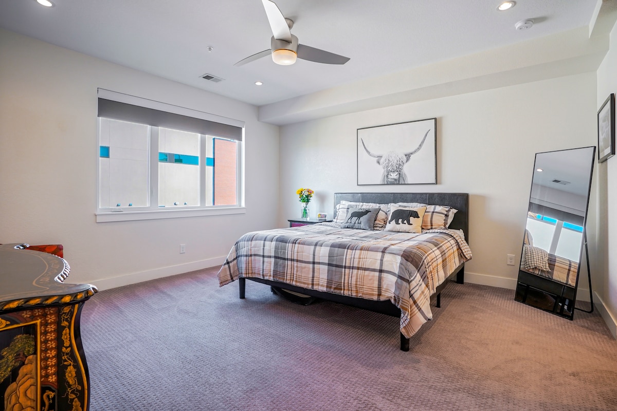 The Asher es un nuevo destino boutique del equipo que te trajo The Curtis Park Club, el Bed and breakfast favorito de Denver. El arte excéntrico, los toques de color y un toque de estampado animal hacen de VRAIN uno de nuestros apartamentos favoritos en The Asher. Dos suntuosos dormitorios tamaño queen son solo parte del atractivo de este espacio grande y espacioso. Asientos de bar para cuatro personas y un cómodo escritorio completan esta visión de la perfección.
