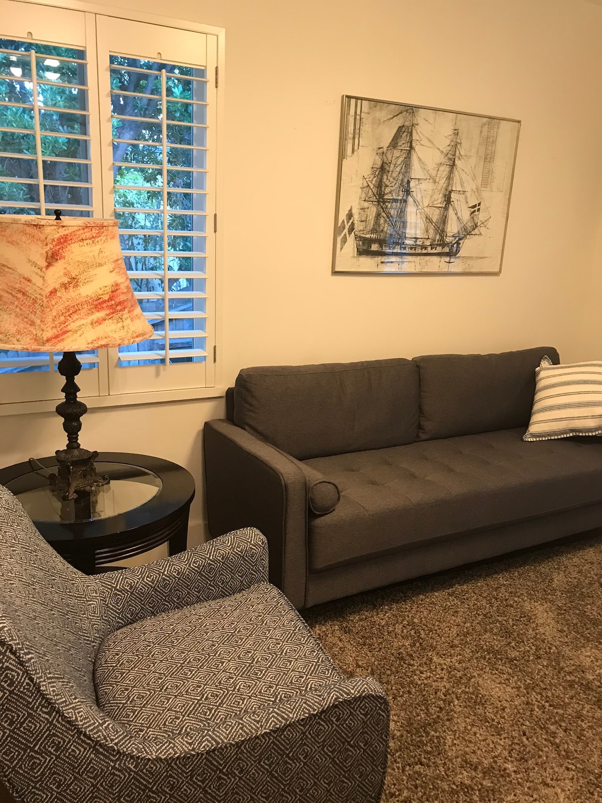 Tranquila y acogedora habitación privada ubicada justo al lado de los mejores restaurantes y entretenimiento de Walnut Creek. Baño/dormitorio totalmente renovado y de última generación ubicado en una unidad tranquila y privada. Dormitorio individual, cama tamaño queen y baño privado. La habitación está separada de la casa principal para una privacidad completa. Wifi, TV por cable y otras excelentes comodidades. Mi casa es ideal para viajeros de negocios. No cuenta con instalaciones compartidas para lavar la ropa o cocinar.
