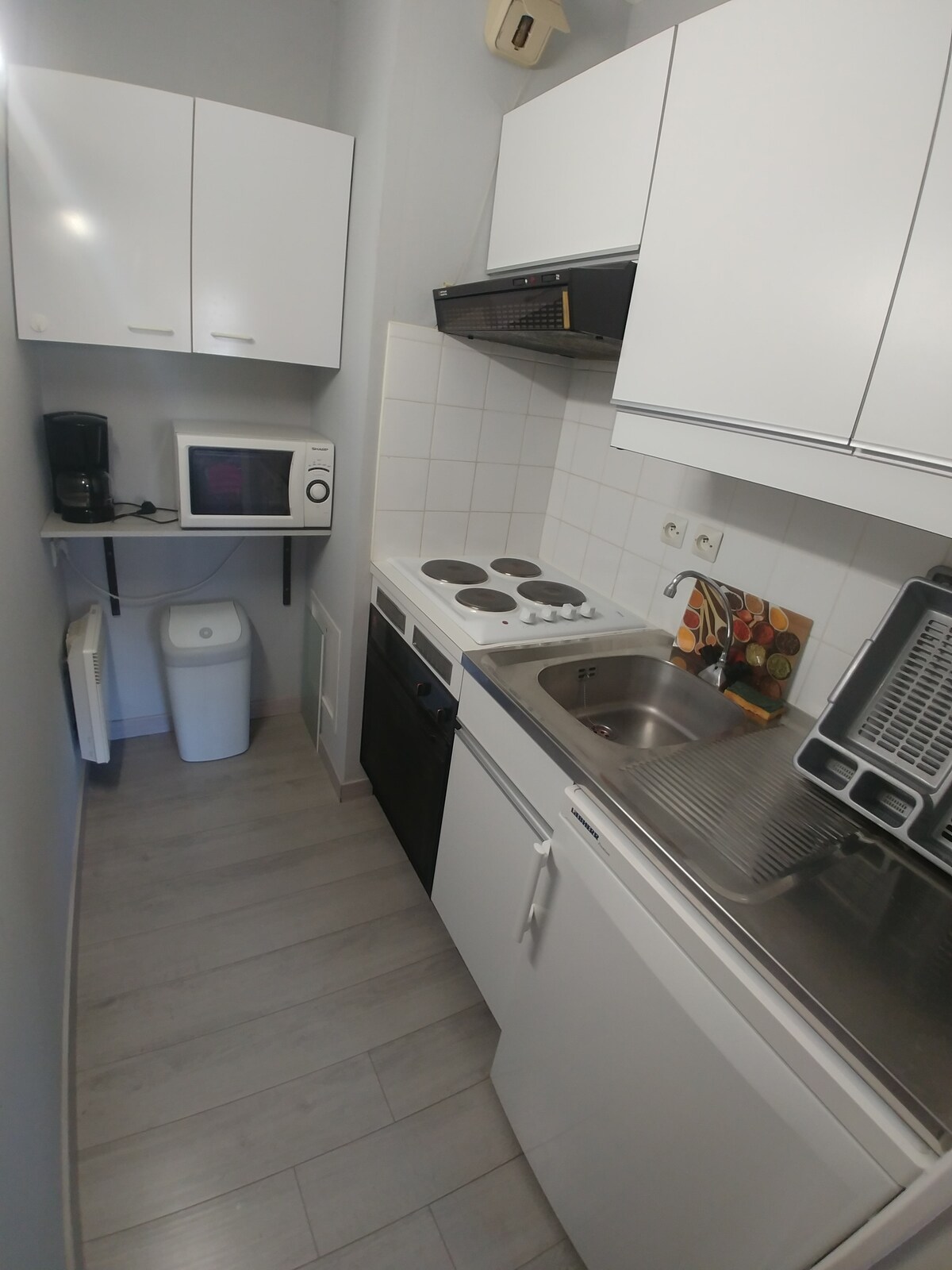 estudio amueblado completamente renovado en una residencia tranquila y tranquila, cerca del centro de la ciudad ( barrio de la época) lanzadera cerca, situado en la planta baja Se compone de: - estacionamiento privado al aire libre - digicode, wifi - una entrada con armario - una sala de estar que se abre al balcón (2 camas de 90, mesa, sillas, televisión) - pequeña cocina abierta (nevera, placa, microondas, horno, vajilla) - cuarto de baño ( ducha lavabo, WC, lavadora. No se admiten animales.