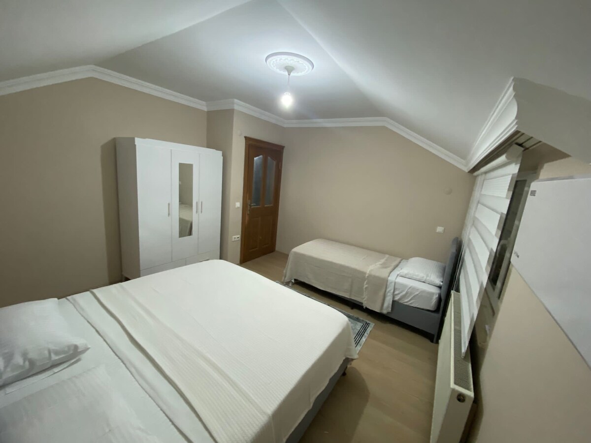 Puedes relajarte con tu familia en este alojamiento tranquilo y único, que es completamente privado y gratuito, a 4 km del centro de la ciudad, a 1,5 km del aeropuerto y a 1,2 km del centro comercial Forum. Tienes la oportunidad de pedir paquetes de todos los restaurantes. Ideal para familias numerosas o grupos. Se ofrece un servicio de traslado opcional.