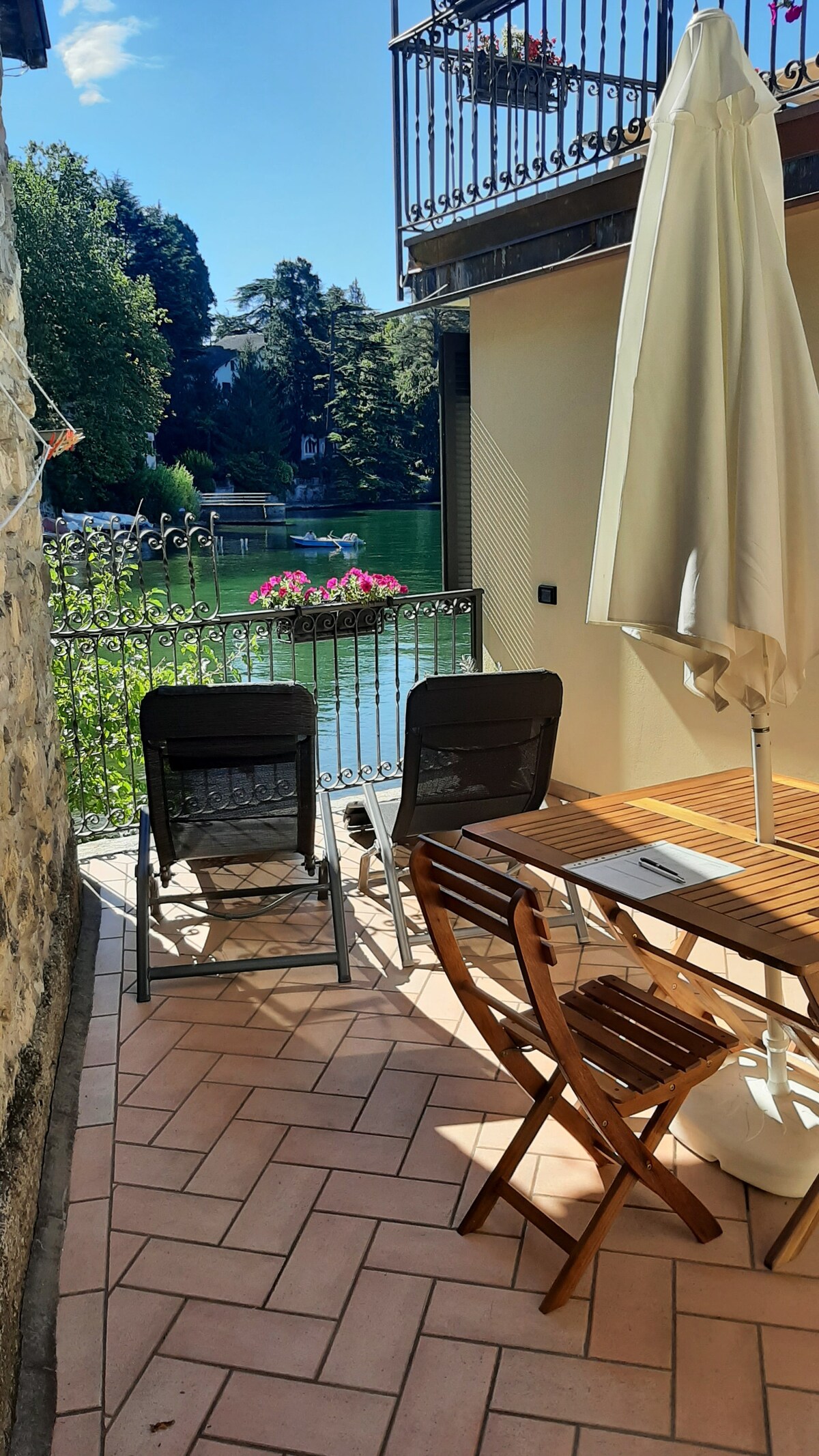 Affascinante bilocale con terrazzo vista lago e posto auto coperto, in posizione strategica, a 1 minuto a piedi dalla stazione e 3 dal centro, tra negozi e servizi. Luminoso e curato in ogni dettaglio, offre una cucina super accessoriata (lavastoviglie, microonde, bollitore, caffè espresso), bagno con doccia e lavatrice, soggiorno con TV e divano letto e un'ampia camera matrimoniale. Il terrazzo, con sdraio, tavolo e tenda da sole, regala un’incredibile vista, perfetta per momenti di puro relax