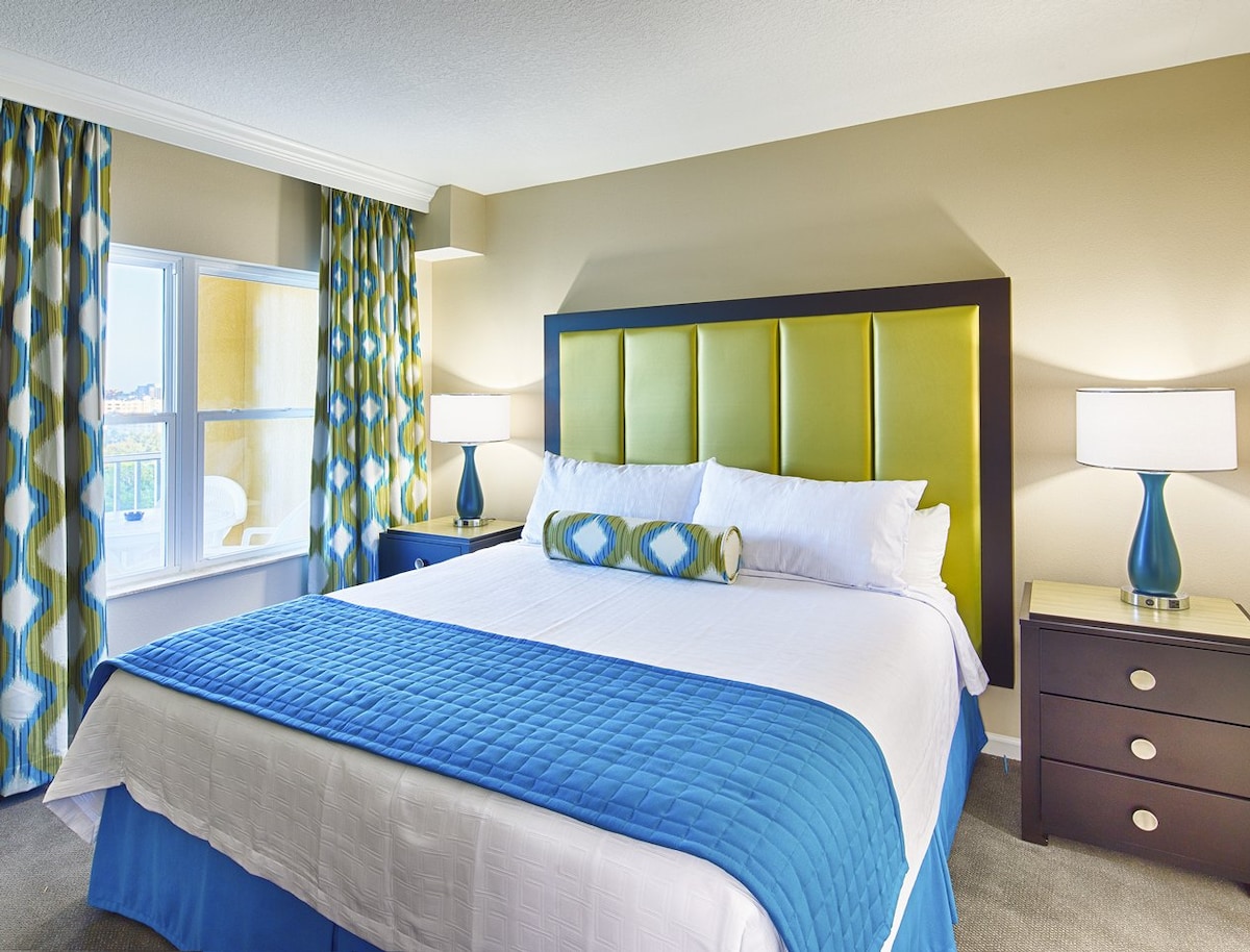 A sólo siete millas de Walt Disney World Resort, el Club Wyndham Reunion es un exclusivo centro vacacional de 2,300 acres que cuenta con espaciosas suites de tres dormitorios que pueden alojar cómodamente a ocho huéspedes. Usted apreciará los dormitorios privados, una cocina completa, sala de estar/comedor, balcón, lavadora/secadora y Wi-Fi. Disfruta del parque acuático de cinco acres con once piscinas, siete jacuzzis y un río perezoso. ¡Las comodidades incluyen tres campos de golf, seis canchas de tenis, tres bares, tres restaurantes y un spa!