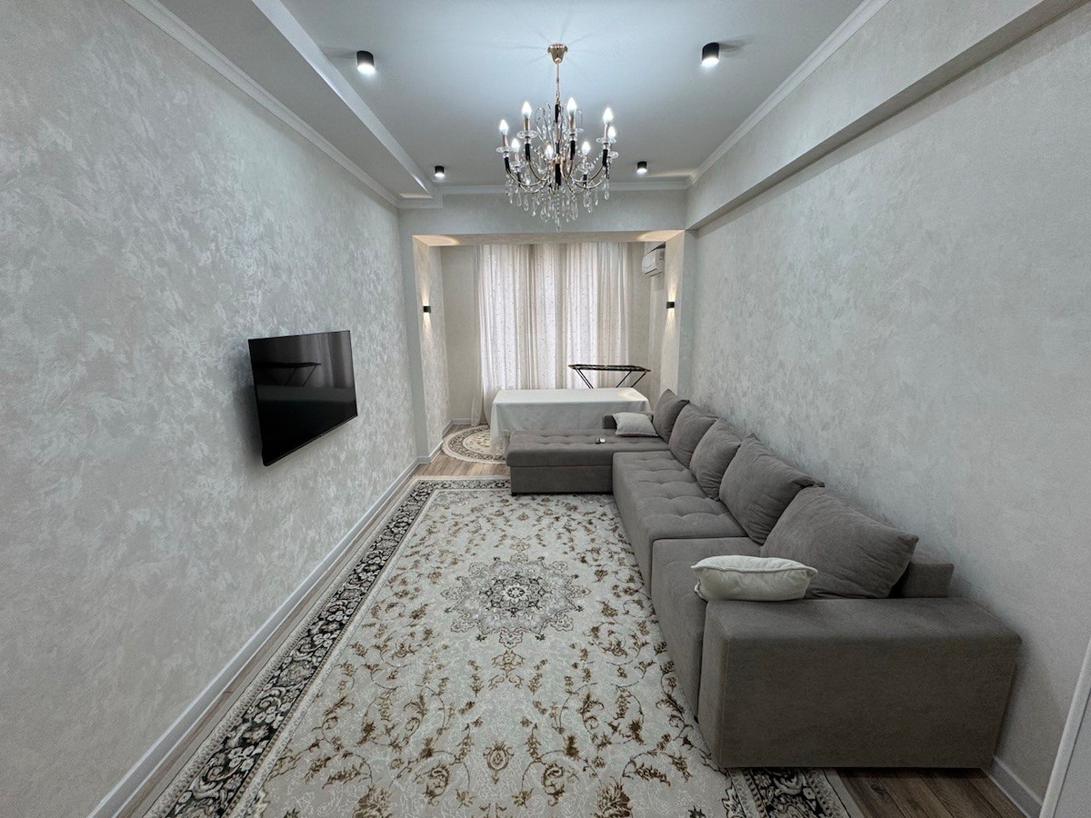 Un acogedor apartamento con un interior moderno en una zona tranquila y segura: Residencia B. Cocina totalmente equipada, aire acondicionado, wifi, lavadora, toallas limpias y ropa de cama. Un dormitorio acogedor, un amplio salón y un balcón para relajarse. Rodeado de tiendas, cafeterías y transporte. Perfecto para una pareja, familia o viajes de negocios. ¡Registro rápido y atención para cada huésped!