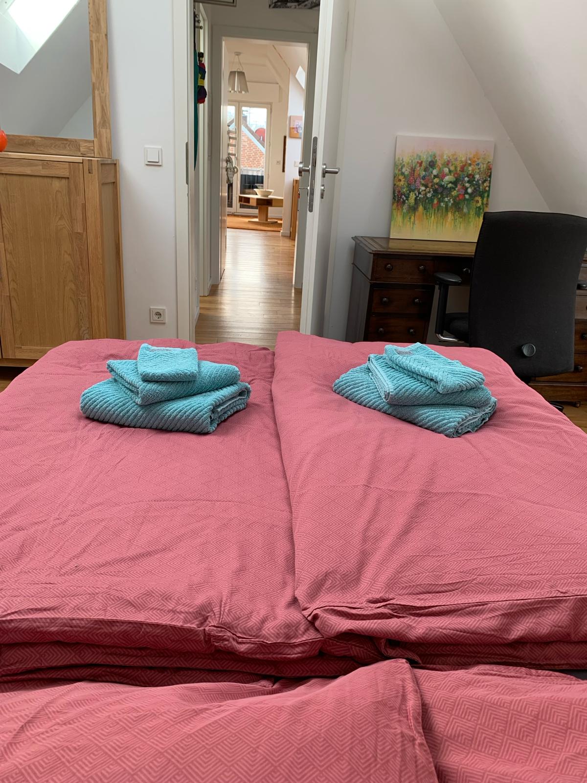 Llegada/salida autónoma las 24 horas,luminoso, apartamento vecino de 1 habitación separado, muy tranquilo, totalmente equipado, entrada privada a través de una escalera de caracol estrecha y empinada, mini baño privado, parada de autobús, cocina equipada + armarios, lavadora-secadora, 1 cama tamaño ( 1,4 veces 2,0 m) , ventilador Televisión XL, espacio de trabajo, WiFi y área de estar. Estacionamiento gratuito. Bicicletas gratuitas, parada de autobús a 25 m de la casa. En bicicleta por el lago Aasee a lo largo de 10 minutos de la ciudad, UKM a 5 minutos y WWU en 8 minutos, estación de tren en 12 minutos.