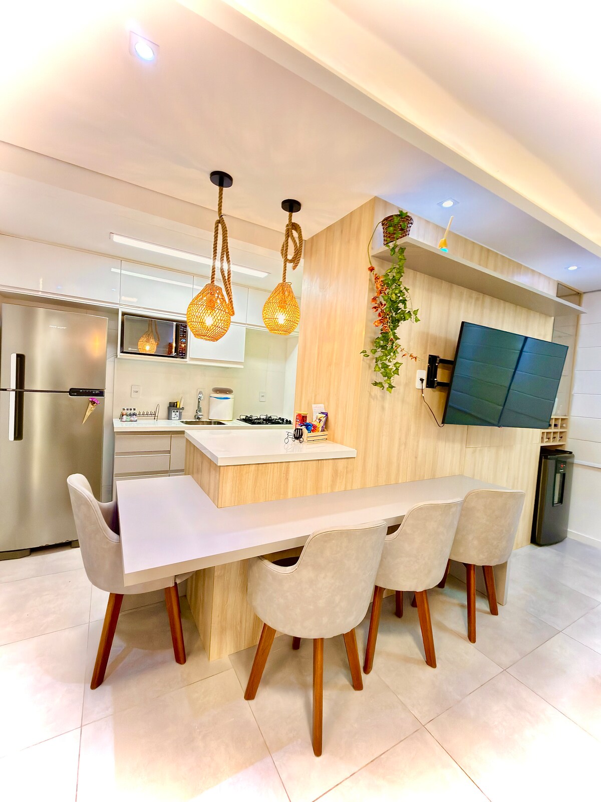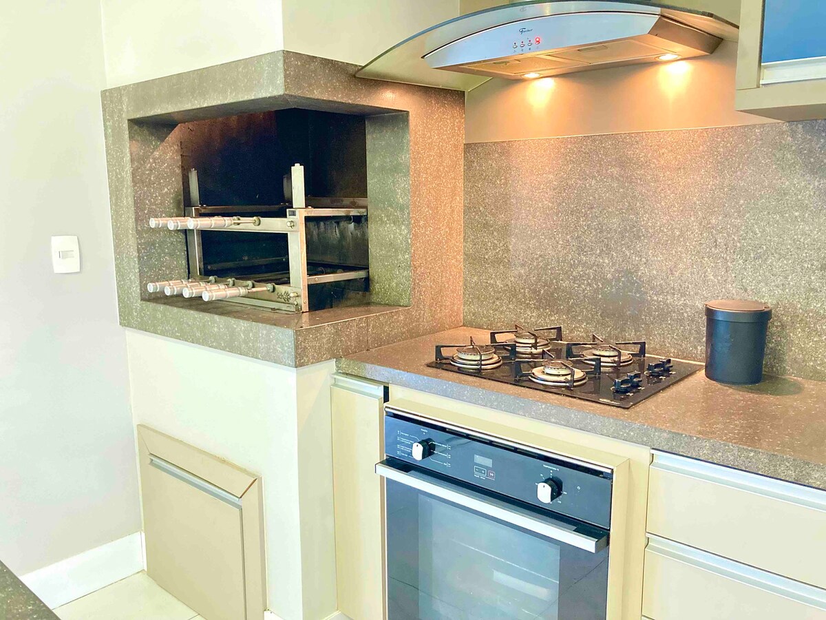 Nuestro rincón está preparado para darles la bienvenida exactamente de la manera en que nos gustaría ser bienvenidos. Con todo el cariño que te mereces. Tenemos una “mini biblioteca” con luz amarilla, acogedora. Aire acondicionado, 3 baños, lavadora y secadora, televisión, todos los utensilios de cocina, barbacoa, 2 dormitorios grandes. Todo preparado cuidadosamente ❤️ * en cond. solo en 1 dormitorio. En la otra suite, ventilador. 1 espacio de estacionamiento.
