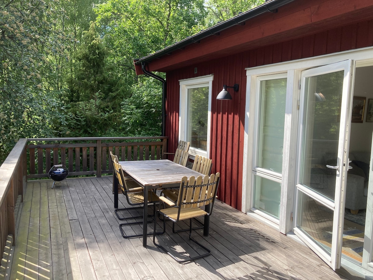 Casa idílica archipiélica con gran terraza de madera con vistas al lago. Muelle de natación compartido para tomar el sol/bañarse. Fogata en la casa y gran jardín. Posibilidad de muchas actividades de ocio todo el año. Kubbspel, bádminton disponible. El huésped realiza la limpieza. /Ing: Idílica casa archipiélago para visitar todas las estaciones. Gran terraza a lo largo de la casa hacia el mar. Muelle/embarcadero compartido para nadar/bañarse. Chimenea en la casa. Gran césped para descansar. La limpieza la realiza el huésped. (Hay algunas pertenencias privadas en la casa)