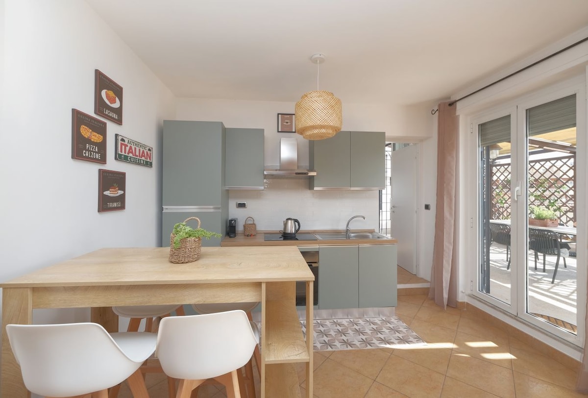 Splendido attico nella meravigliosa zona del Vaticano a due passi dalla Basilica di San Pietro e dai Musei Vaticani. Dispone di una meravigliosa terrazza dove trascorrere serate in relax. Punto strategico per raggiungere Castel Sant’Angelo, Piazza Navona e Campo dei Fiori, nel cuore della città eterna, senza rinunciare alla privacy ed alla tranquillità. A 2 minuti dalla stazione ferroviaria di Roma San Pietro e 10 min da metro Ottaviano per raggiungere la stazione di Roma Termini e l’aeroporto.