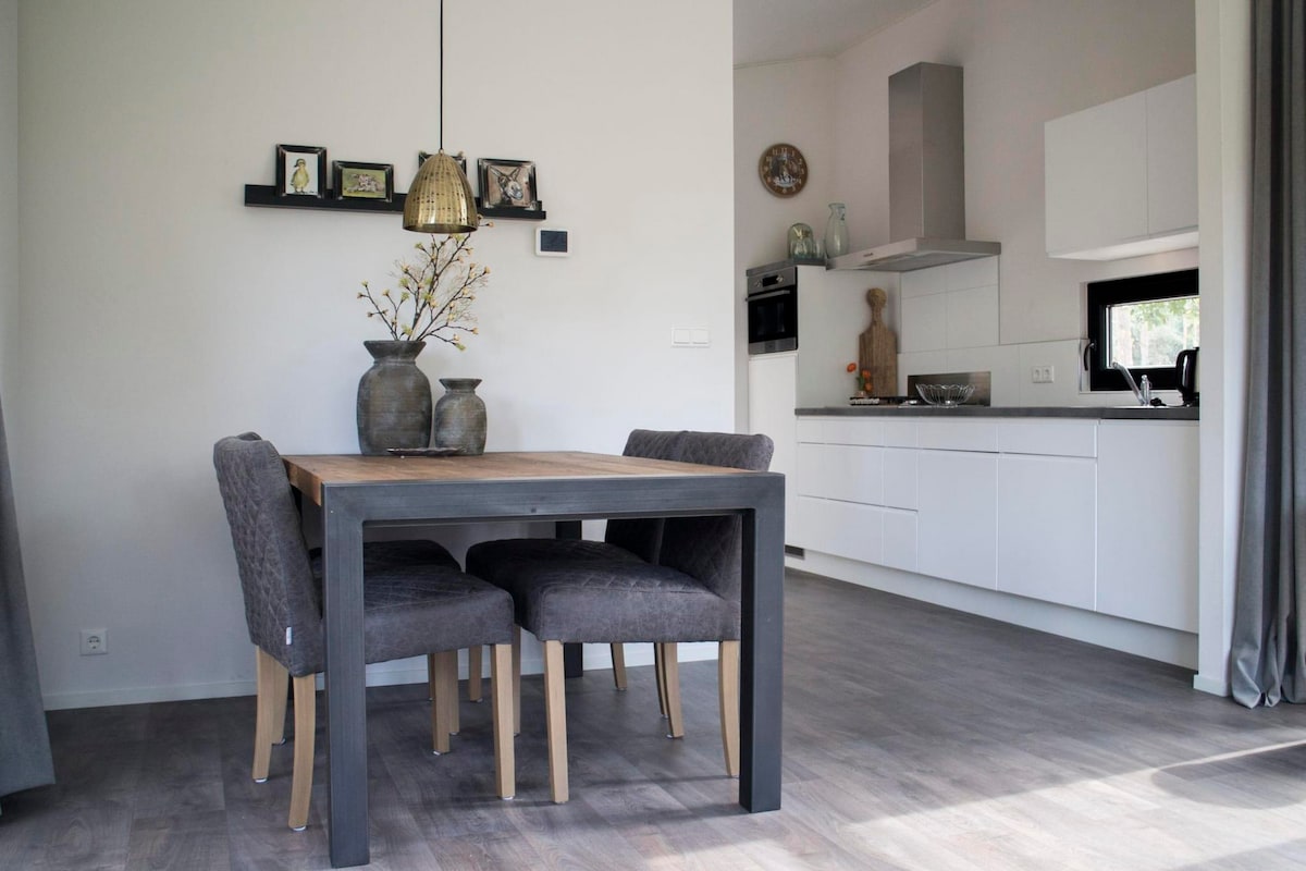 Acogedor bungalow en un hermoso y tranquilo parque de bungalows. La casa ha sido completamente renovada y completamente reformada. WiFi gratuito y cobertizo para las bicicletas. La casa tiene tres dormitorios, salón con cocina abierta, dos amplias terrazas soleadas, ubicadas en el centro de los bosques y brezales de Veluwe. El parque tiene una piscina al aire libre (verano), gimnasio, lavandería, sauna, registro de entrada y recepción las 24 horas. Hay un restaurante acogedor, una gran cafetería y también es posible el alquiler de bicicletas.