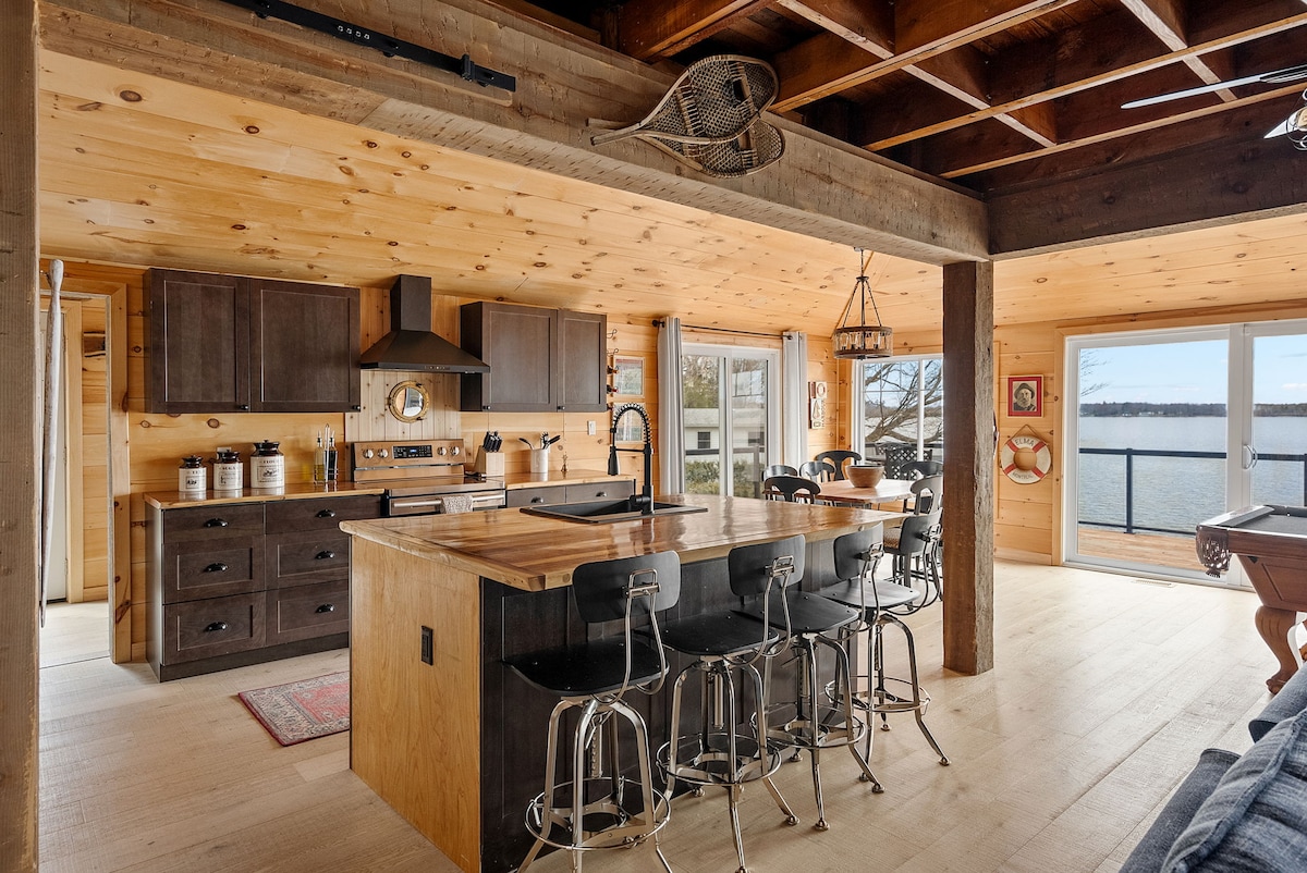 Relax with the whole family at this cozy lakefront property. Complete with your very own sandy beach, kayaks, hot tub, and multiple outdoor dining and fire pit options, this cottage nestled in the Canadian wilderness is a must-visit! Whether you're coming during the summer to enjoy swimming in the clear water at Bob's Lake or you're searching for a cozy winter escape, look no further. Close to the K&P trail system, hiking, snowmobiling, and water sports, adventure and relaxation await!