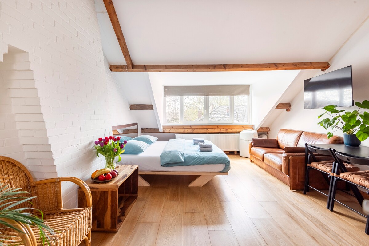 White Clogs House is the perfect home for families and couples who love being close to nature, yet still want to stay near the city center. The house features a cozy living room with a fireplace, a comfortable sofa bed, a TV, a dining table, and a fully equipped kitchen. On the first floor, there are two bedrooms, each with a king-size bed, and a separate bathroom with a toilet. Free Wi-Fi is available in the house, and there are two free parking spaces right in front of the door.