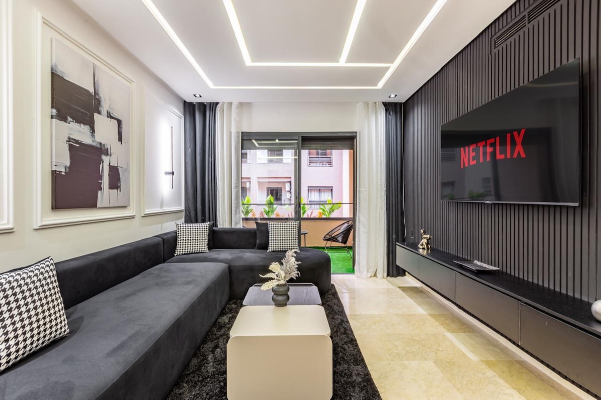 ✨Families & Marrakech - Elegance, space, and serenity Designed for families seeking comfort and refinement, this spacious apartment offers a chic and welcoming atmosphere. The bright living room invites shared moments, the elegant bedroom ensures peaceful nights, and the functional dining area makes everyday life with children easier. Located in a quiet neighborhood, this fully equipped apartment is a true premium haven for relaxing and discovering Marrakech at your own pace.