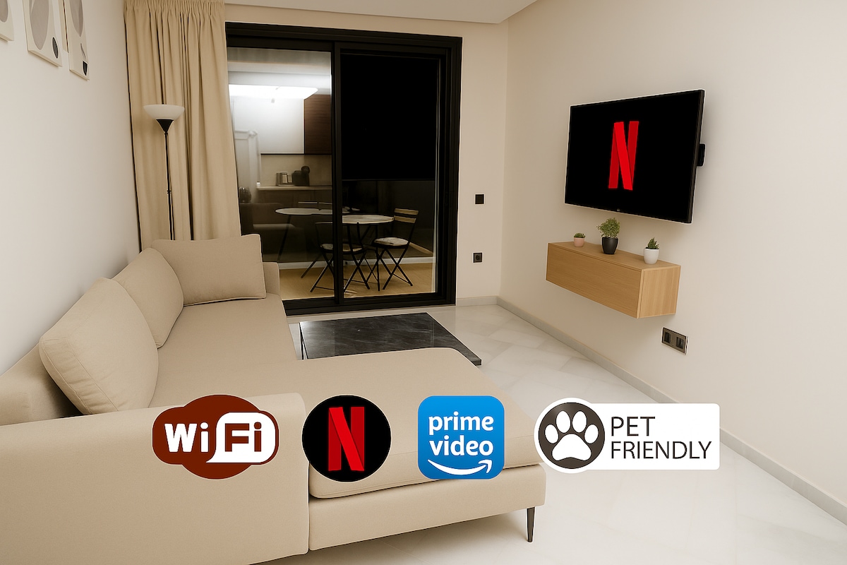 Bienvenido a nuestro moderno y cómodo apartamento ubicado en una zona tranquila y segura, uno de los principales lugares de interés de Casablanca y los centros comerciales más grandes de África. El apartamento cuenta con una amplia sala de estar con cómodos sofás y TV, dormitorios equipados con camas limpias y cómodas, una práctica cocina con todas las herramientas de cocina esenciales y un baño moderno con todos los servicios necesarios. La ubicación está rodeada de servicios esenciales como mercados, restaurantes, cafeterías y transporte público.