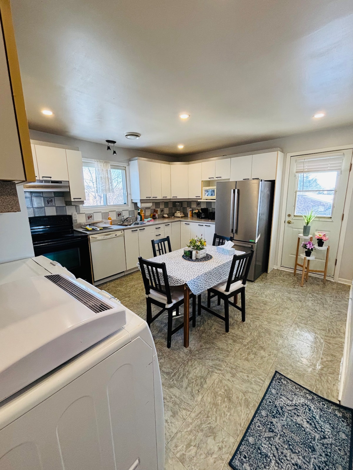 Loft único y elegante de 1 dormitorio en dos plantas combina un diseño minimalista con una practicidad moderna. La planta principal cuenta con una cocina totalmente equipada, una gran mesa de comedor, un espacio de trabajo y un acogedor sofá en forma de L que se convierte en una cama tamaño queen. Arriba, el espacioso dormitorio cuenta con una cama tamaño king de terciopelo negro. El baño, en una habitación separada, incluye una ducha, un armario de almacenamiento y lavandería en suite (lavadora y secadora). Aparcamiento interior con calefacción disponible por 25 $/noche Número de establecimiento: 305639