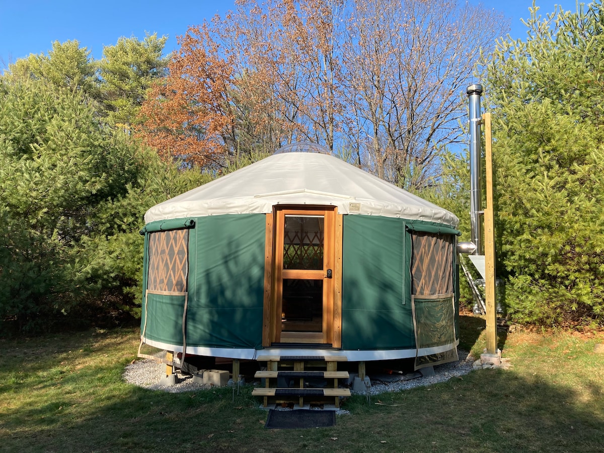 *Envíenos un mensaje para preguntar sobre posibles descuentos* Bienvenido a esta escapada inolvidable en la campiña de Maine. Ubicado en un antiguo huerto de manzanas cubierto de maleza Una experiencia única que combina comodidad y naturaleza, esta amplia yurta de pino ofrece una cocina totalmente equipada, un interior acogedor, 2 dormitorios y wifi. Imagina tomar café en la terraza, noches estrelladas junto a la fogata y mucho aire fresco. Esta yurta de lujo es el punto de partida ideal para disfrutar de aventuras al aire libre, ya que hay granjas y rutas de senderismo cerca.