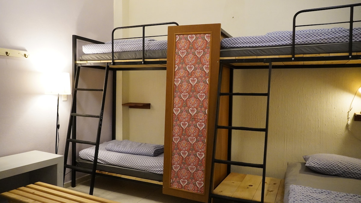 Casa Alí es ideal para vacaciones familiares. Ofrece un espacio amplio, limpio y cómodo con capacidad para 12 huéspedes. Cuenta con dos habitaciones con 6 camas cada una. Una habitación semi privada decorada con estilo bohemio y una cama individual junto al comedor, con privacidad. La sala de televisión tiene un futón Queen size. La cocina está bien equipada, y la casa dispone de cochera para 3 autos, 4 w. c y 3 regaderas. La mesa del comedor tiene capacidad para 12 personas. Decoración bohemia.