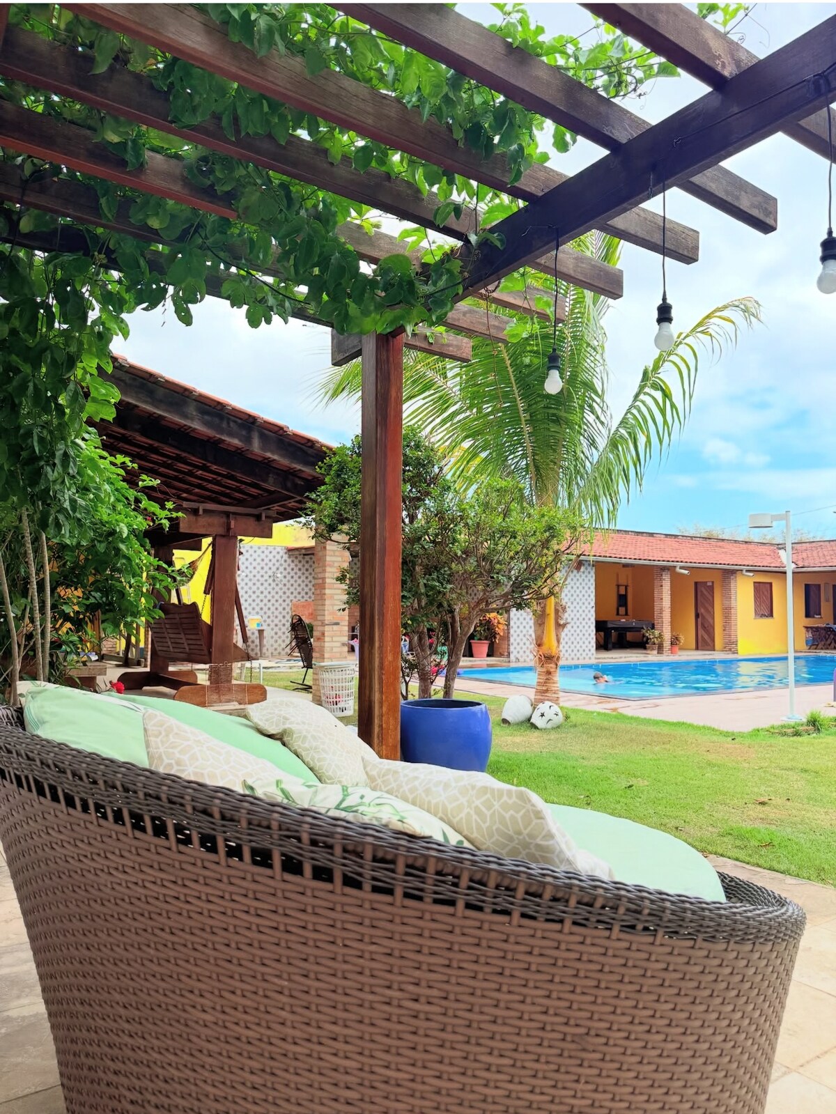 Acerca de este espacio Una hermosa villa se alquila por día o temporada, bien arbolada, bien ventilada, en un lugar muy tranquilo. A 5-7 minutos en coche de la playa de Araçagy y a 3-5 minutos en coche del parque acuático de Valparaíso. Tenemos estufa, congelador, nevera, sillas y mesas, Ubicación tranquila, silenciosa. Lejos del bullicio.