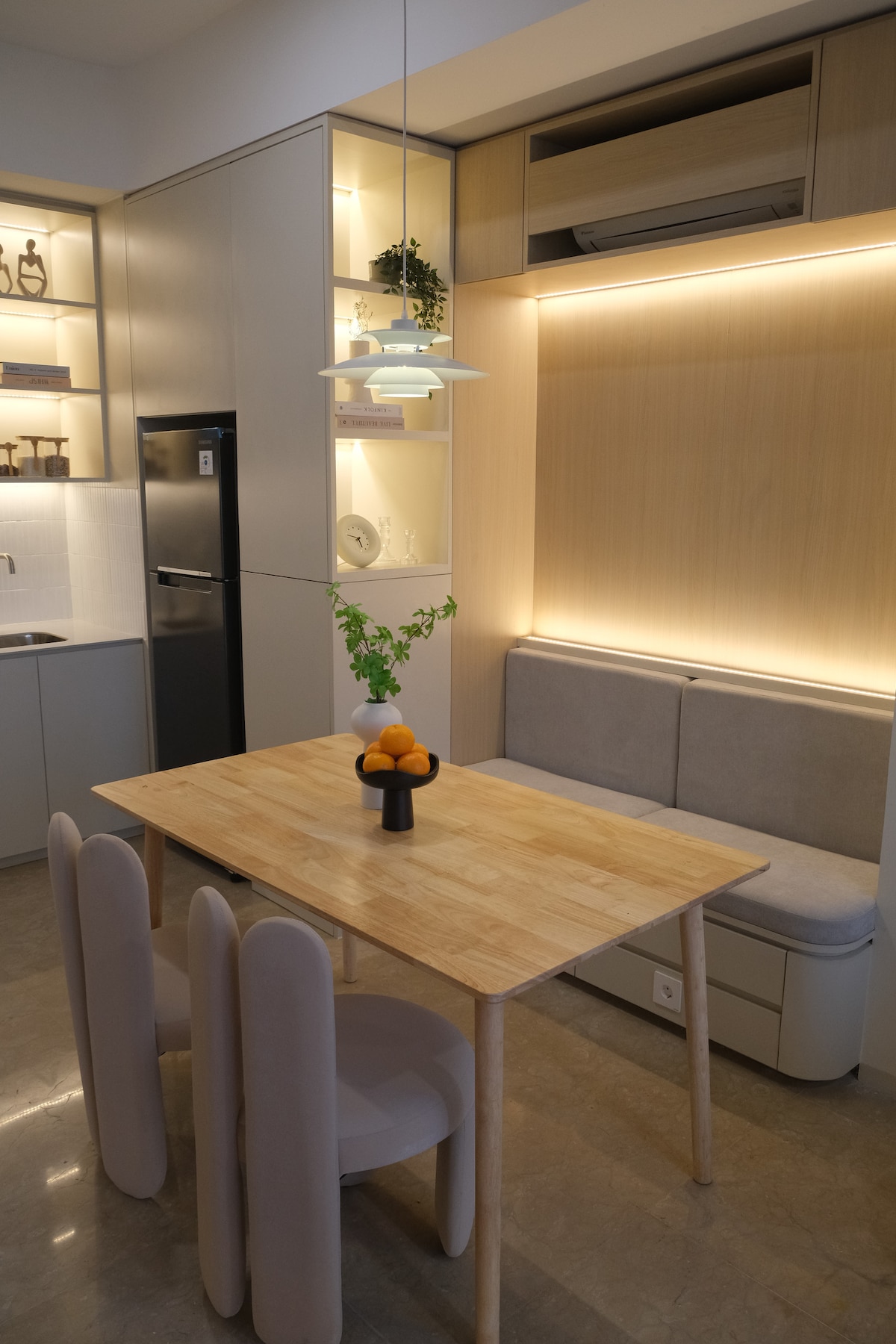 ¡Te damos la bienvenida al ático de 2 pisos en el condominio Maplepark cerca de JIEXPO y JIS! Disfruta de wifi de alta velocidad de más de 200 Mbps, streaming de Netflix/ Youtube y tarifa de estacionamiento GRATUITO (para estancias >5 días). El elegante diseño de planta abierta ofrece luz natural, una cómoda zona para dormir y espacio para relajarse o trabajar. Cocina en la cocina totalmente equipada o relájate en el balcón privado con impresionantes vistas a la ciudad. Perfecta para viajes de negocios o de placer, esta elegante unidad combina el encanto acogedor con la comodidad urbana en el vibrante corazón de la ciudad de Yakarta.