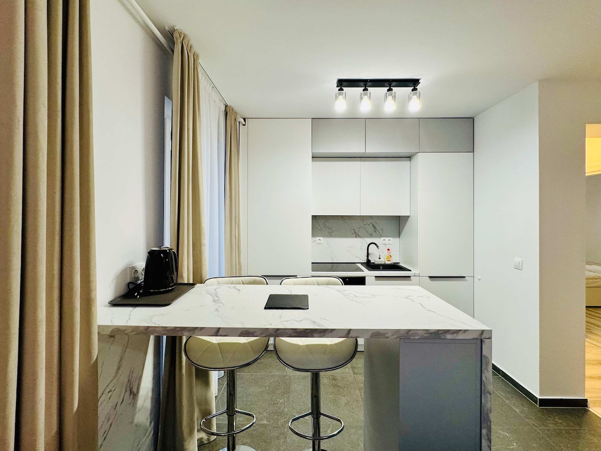 Bine ai venit la Studio 7, un refugiu urban situat la doar 10 minute de centrul Timișoarei. Deși amplasat într-un bloc din perioada comunistă, interiorul modern surprinde printr-un design elegant și atent gândit, unde confortul contemporan se îmbină armonios cu accentele stilate. Fiecare detaliu este ales pentru a crea o atmosferă caldă și relaxantă, iar finisajele de calitate oferă un plus de confort. Un spațiu ideal pentru a explora orașul și a te relaxa într-un ambient premium.