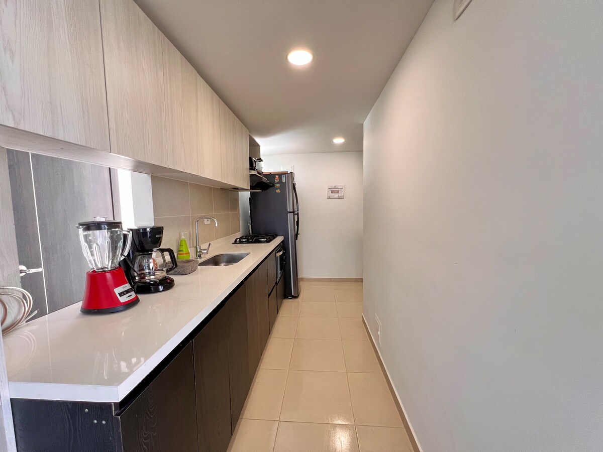 **RNT=231079 ** **IMPORTANTE**: El conjunto exige manillas de entrada para cada persona por un valor de $5.000 COP que se pagarán directamente en portería. Espacio agradable y moderno. 3 habitaciones, 2 baños, sala comedor, cocina integral, espacio de lavandería, balcón con vista espectacular, calentador de paso. El conjunto cuenta con una terraza, zona de asados, zona de lectura, patinaje y zona de juegos y piscina climatizada!.
