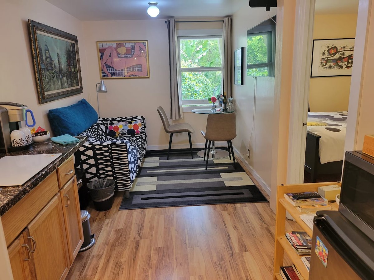 Suite tranquila, espaciosa y privada con patio.