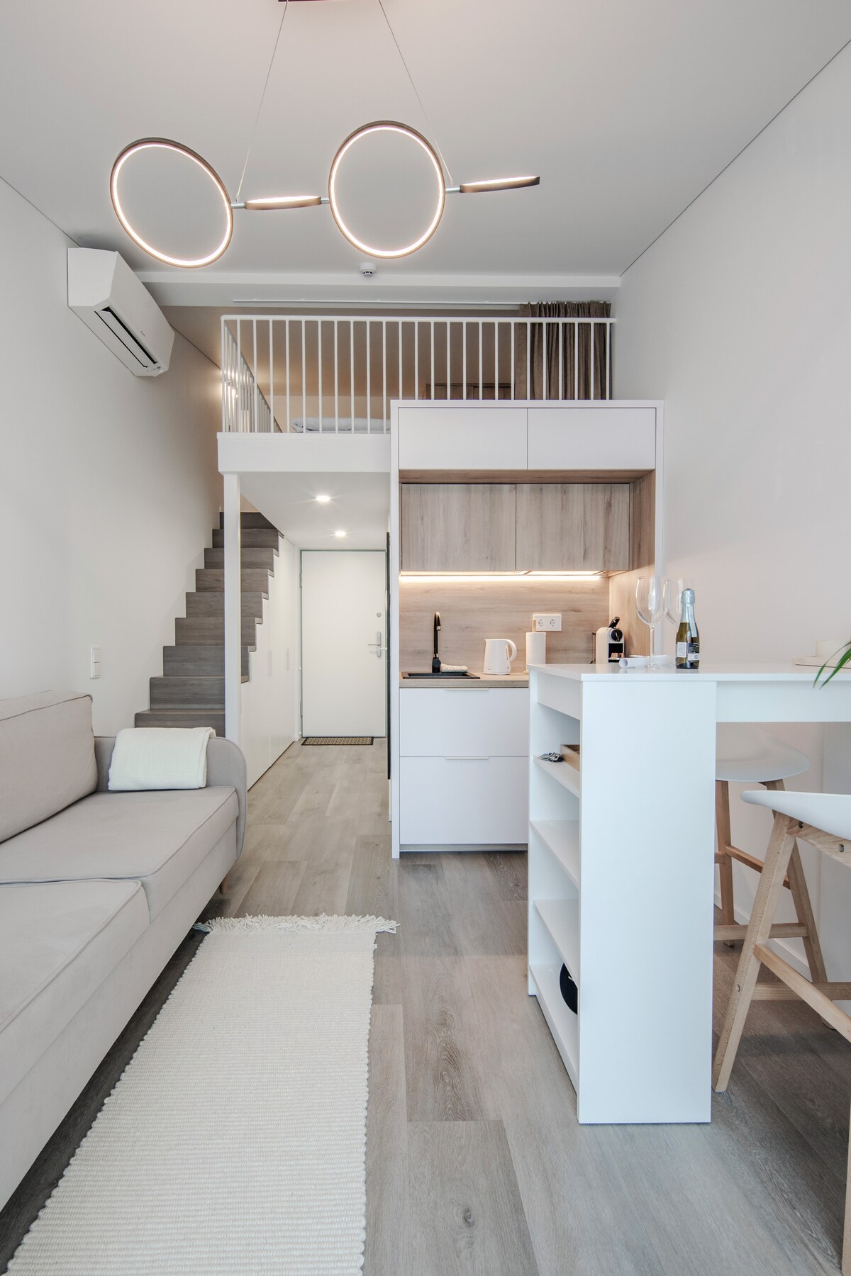 Despiértate con el sonido de las olas y duerme con las brisas marinas, bienvenido a la casa más cercana a la playa de Palanga. Este estudio espacioso y luminoso ofrece una combinación única: acceso directo a las dunas, balcón privado y todas las comodidades para una relajante escapada a la costa. A solo 2 minutos a pie a lo largo de un camino de madera que te lleva sobre las dunas y directamente a la playa. Ya sea que estés tomando tu café de la mañana o disfrutando de una puesta de sol tranquila, el balcón se convierte en tu asiento de primera fila al ritmo del mar.
