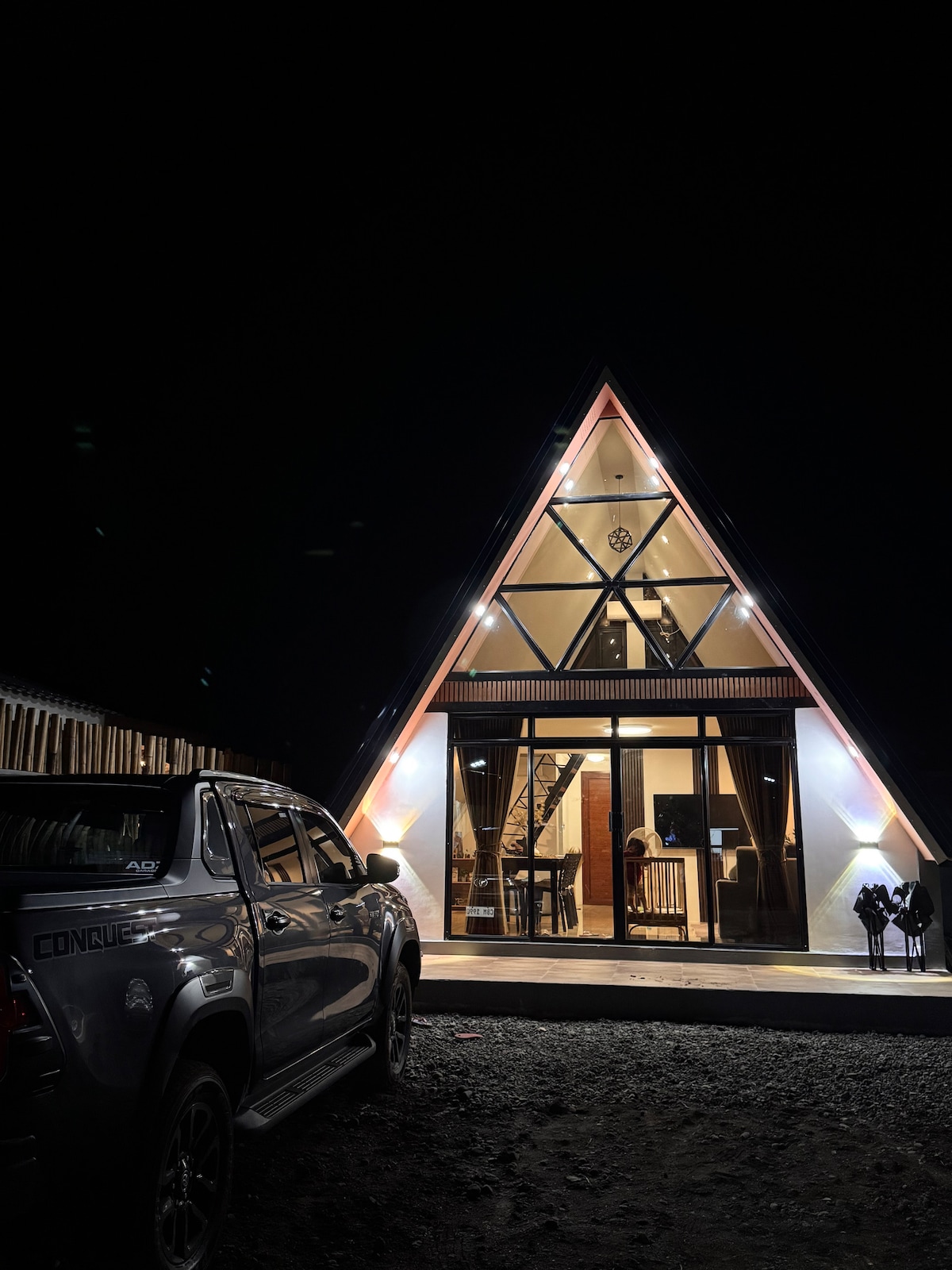 Take it easy at this unique and tranquil getaway. Welcome to our Fully Air-Conditioned A-Frame Cabin Transient that can accomodate up to 15-18 pax. You can enjoy your privacy & quiet place. It's just 5 mins. Walk to the beach if you want to experience FREE Sunset & Bonfire and the view is the Port Irene with some Ships