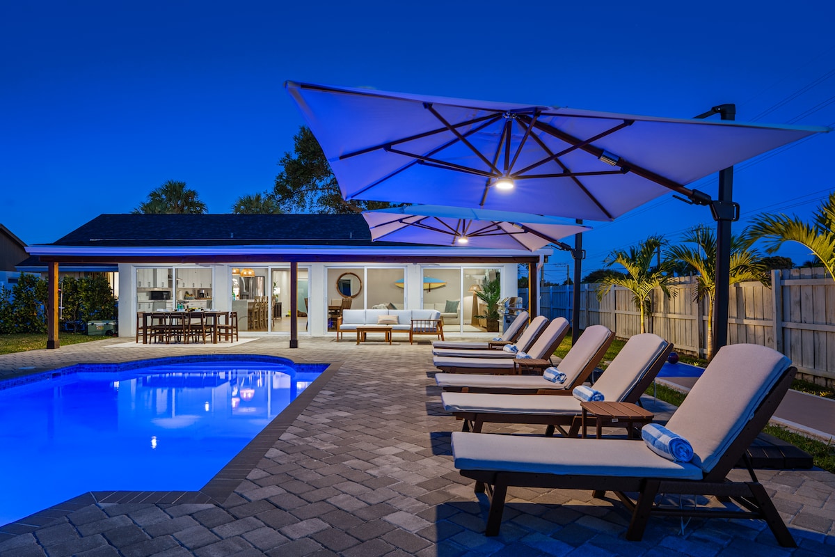 ¡Bienvenido a tu mini resort privado de 5 estrellas! Este impresionante oasis de 4 dormitorios en West Palm Beach cuenta con un enorme patio trasero con una piscina climatizada prístina y una cancha de baloncesto privada completa. Relájate con estilo en las camas de día prémium Purple Leaf o cena al aire libre en nuestra mesa de diseño de 8 asientos. En el interior, disfruta de una cocina de chef, audio Sonos, juegos de arcade y Nintendo Switch. ¡A minutos de las playas de élite y del centro de la ciudad! Wifi de alta velocidad, ropa de cama de hotel y equipo de playa incluidos. ¡El mejor refugio familiar de lujo!