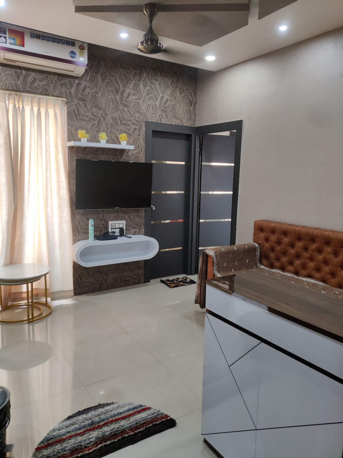 Cozy 1BHK on the ground floor with a home-theatre vibe! Enjoy a huge projector for movie nights, a fully equipped kitchen with fridge, microwave, water purifier, and all essentials. The bedroom features a snug king-sized bed, AC, and ample storage. Includes washing machine, clean bathroom with essentials, WiFi, and self-check-in for your convenience. Pet-friendly and perfect for couples, solo travellers, or long stays. Private unit with no shared spaces. Local identity proofs not accepted.