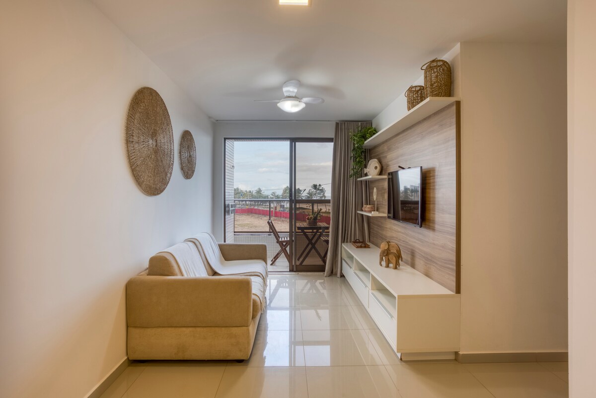 Apartamento novo em prédio pé na areia, de frente para o mar do Bessa, com terraço privativo e piscina compacta, ideal para momentos de relaxamento! O espaço é automatizado com Alexa e acomoda confortavelmente 4 hóspedes, sendo 100% equipado e funcional. Ideal para quem busca conforto, localização estratégica e uma ótima experiência!