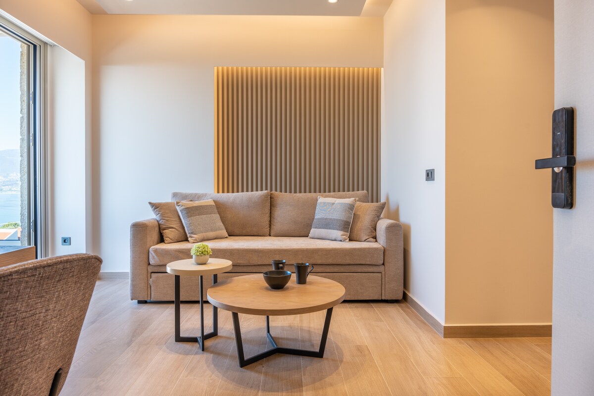 Sea stone villa is located right above the sea, in a truly unique setting offering uninterrupted panoramic views of the endless blue. A private staircase from the house leads directly down to a small, quiet beach, giving you easy and exclusive access to the sea whenever you wish. The soothing sound of the waves and the feeling of being just steps from the water create the perfect atmosphere for complete relaxation.