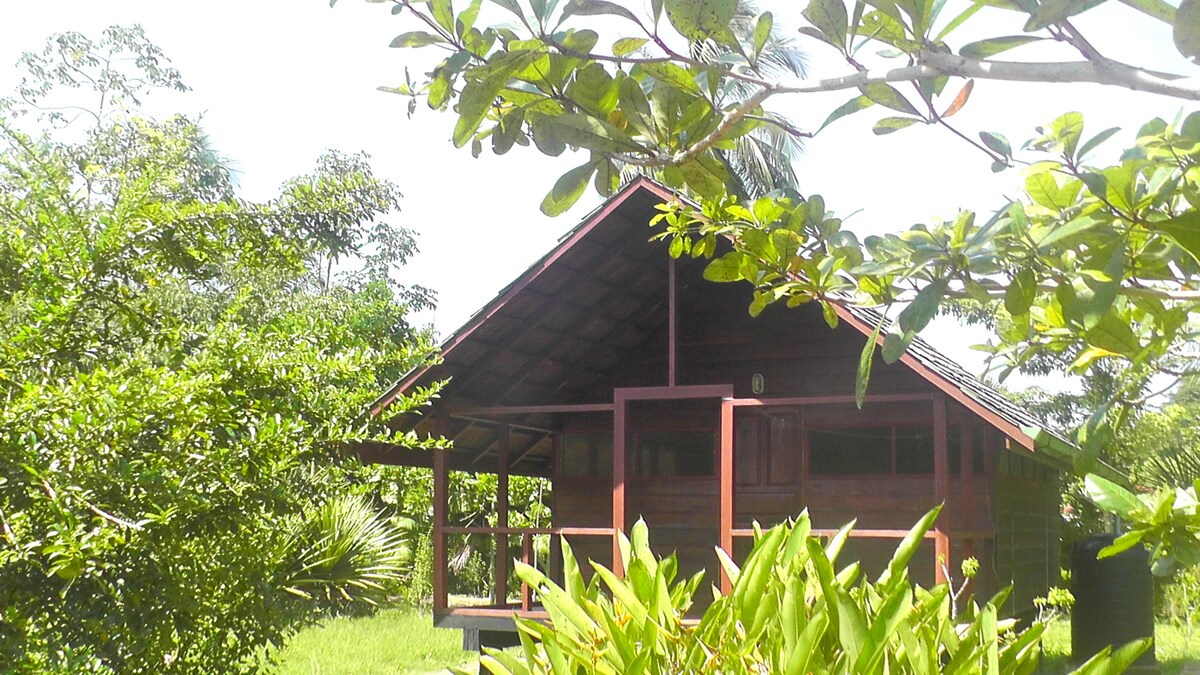 Este albergue de madera se encuentra a menudo en el interior profundo de Surinam, la diferencia es que este albergue está equipado con luces, electricidad, hervidor de agua, nevera y wifi. El baño está completamente revestido de azulejos. Hay un amplio armario abierto para ropa y equipaje y, por supuesto, un balcón para la hamaca. Las ventanas de las mosquiteras se extienden alrededor de todo el albergue, dejando entrar el viento y una cacofonía de sonidos de pájaros.