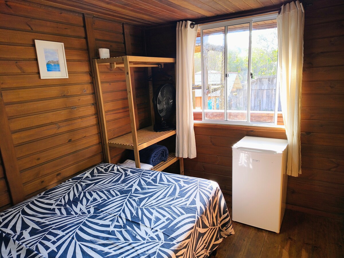 Relájate en este lugar único y tranquilo muy cerca de la playa. ☀️🏖️🌊 Suite con cama doble, ropa de cama, ventilador de techo, baño exclusivo, minibar, cafetera, sandwichera, hervidor eléctrico, comedor y hamaca. ¡Registro y salida flexibles!
