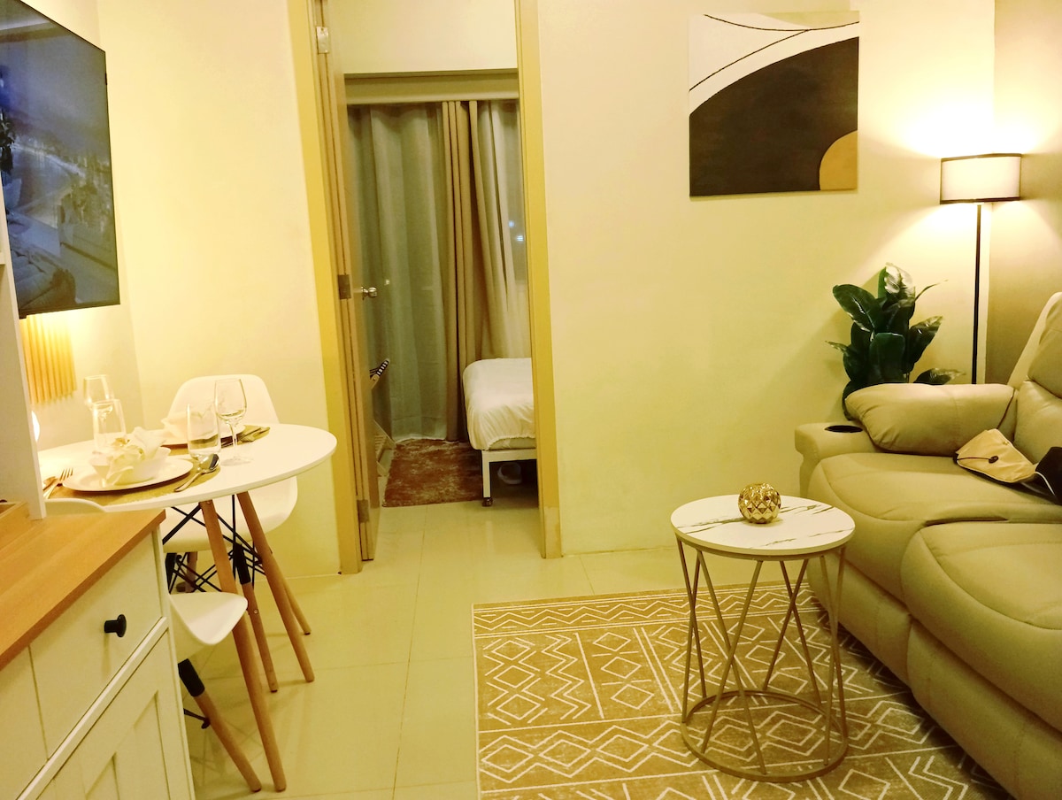A luxurious smart condo with cozy balcony, swimming pools, free WiFi, Netflix, Xbox, air purifier and keyless entry. Walking distance from mall and minutes away from airport. *Keyless Access *Xbox *50Mbps WiFi *Netflix & YouTube *43 inch Smart HDR Internet LED Sony TV & Sony Soundbar *Bose speaker *Air Purifier *2 hp inverter A/C *Ceiling Fan *Double bed w/memory foam mattress & luxury linnen *Hot & Cold Drinking Water Dispenser *Hot Shower *Washing Machine *Complete Kitchen! *28.19 sqm