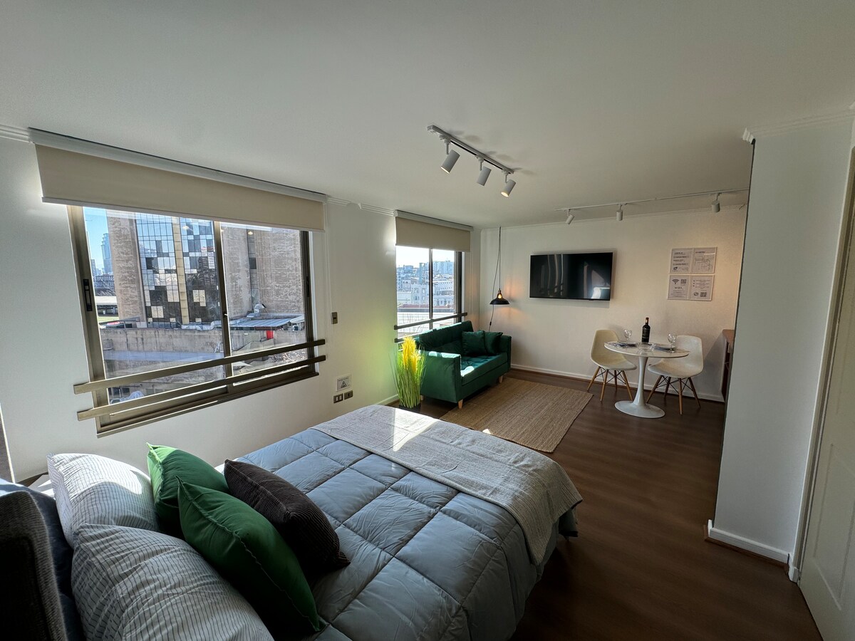 Departamento de un ambiente con una decoración única. Excelente conectividad (caminando, en cinco minutos llegas al metro Baquedano). Ubicado en un barrio tradicional en pleno centro, está orientado a una calle tranquila y silenciosa, con un bonito balcón con vista a la cordillera de los Andes. Está cerca de parques (Bustamante, San Borja y Forestal), cafés, restoranes, bares, cines, teatros, museos, bibliotecas y atracciones turísticas como el Cerro San Cristóbal y el Cerro Santa Lucía.