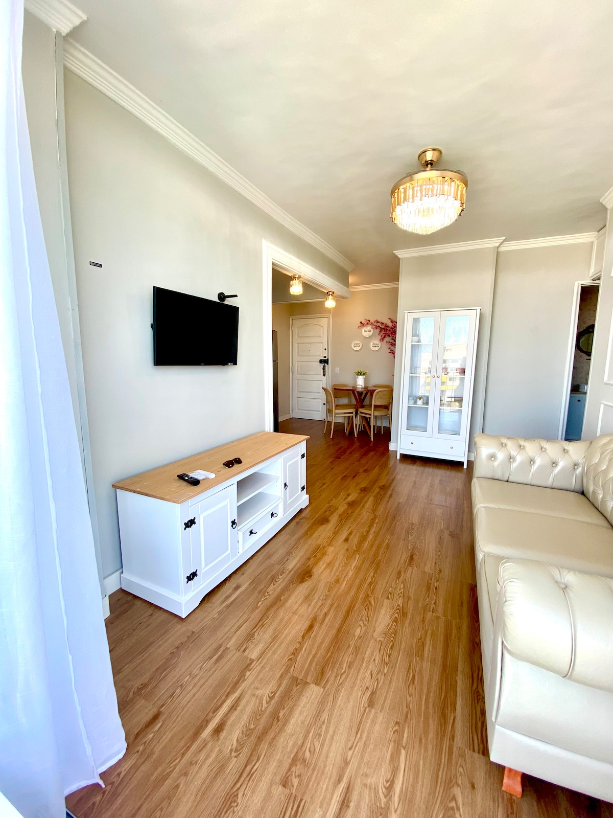 Amplia sala de estar y dormitorio con balcón, bien decorados y totalmente equipados Internet de fibra óptica de alta velocidad, Wi-Fi, 2 televisores inteligentes (de 55 pulgadas en la sala de estar y de 46 pulgadas en el dormitorio), sala de estar con ventilador de techo y sofá cama, dormitorio con cama queen, aire acondicionado de sistema split, bonito escritorio con impresora, cocina pequeña con refrigerador, estufa, microondas, tostadora, licuadora, cafetera Nespresso y utensilios, secador de pelo, lavadora, plancha y tabla de planchar, y un encantador balcón con vista lateral a la playa y a la piscina.