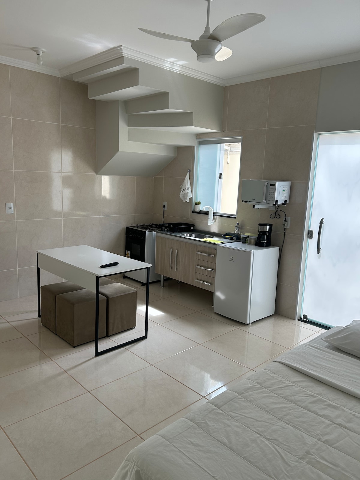 Kitnet Studio Aconchego con toque amarillo.
