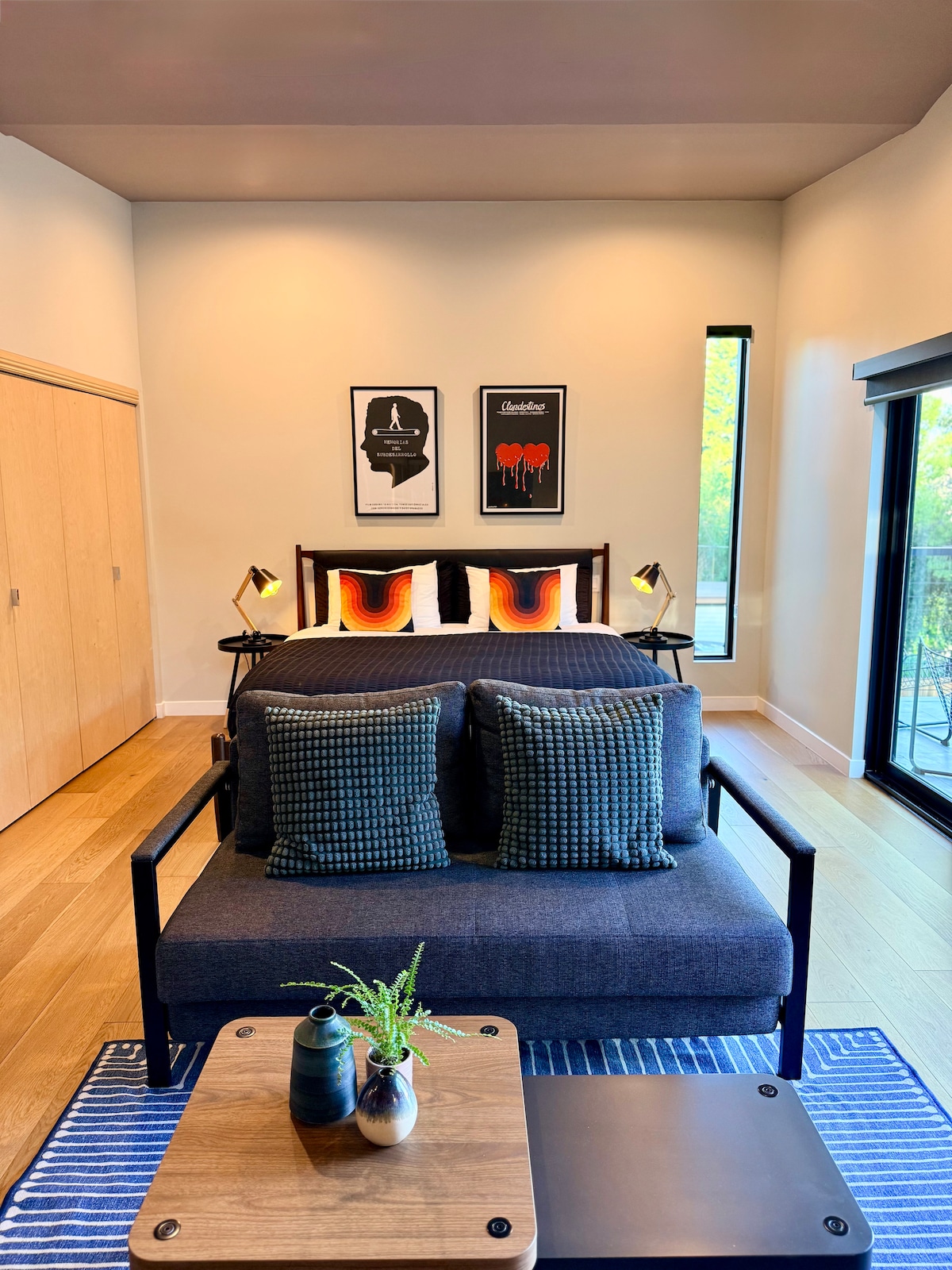 Relax in this serene, private Los Angeles retreat in Highland Park, set on a large, gated property near Pasadena and surrounded by a Mediterranean garden under the California sun. This beautifully designed, recently constructed modern guest studio is a separate, stand-alone structure from the primary residence, offering access to a shared swimming pool and dedicated off-street parking on a secure property. A curated original collection of art and photography books is available for guest use.