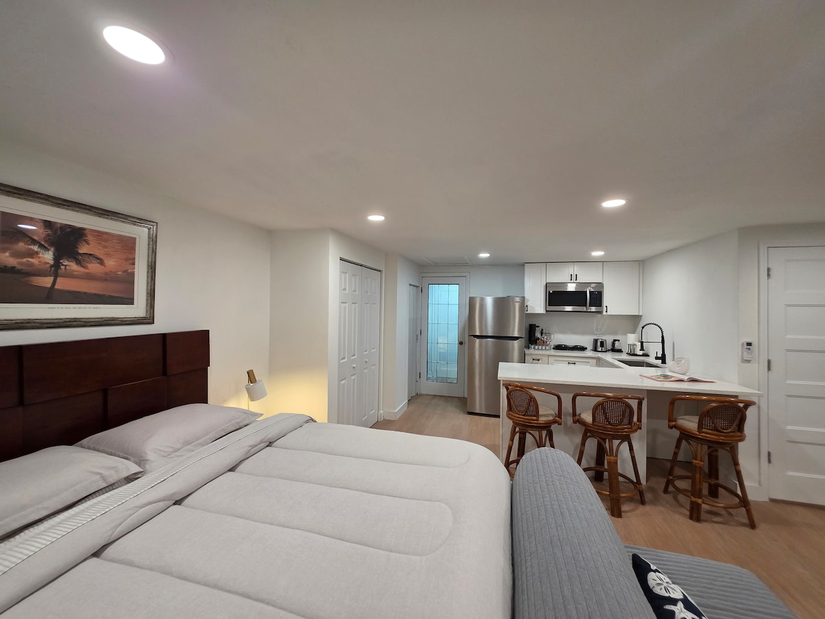Relájate y desconecta en este alojamiento tranquilo y elegante. Este apartamento tipo suite de un dormitorio actualizado cuenta con una smart TV en el dormitorio y la sala de estar. La cocina completamente equipada está diseñada para que te sientas como en casa. Disfruta de un café por la mañana o de una agradable noche bajo las luces del patio privado. La suite se encuentra a poca distancia en coche del centro de la ciudad, parques, locales, restaurantes y playas. Siempre estamos disponibles para responder a preguntas e inquietudes. Reserva ahora para una estancia inolvidable.