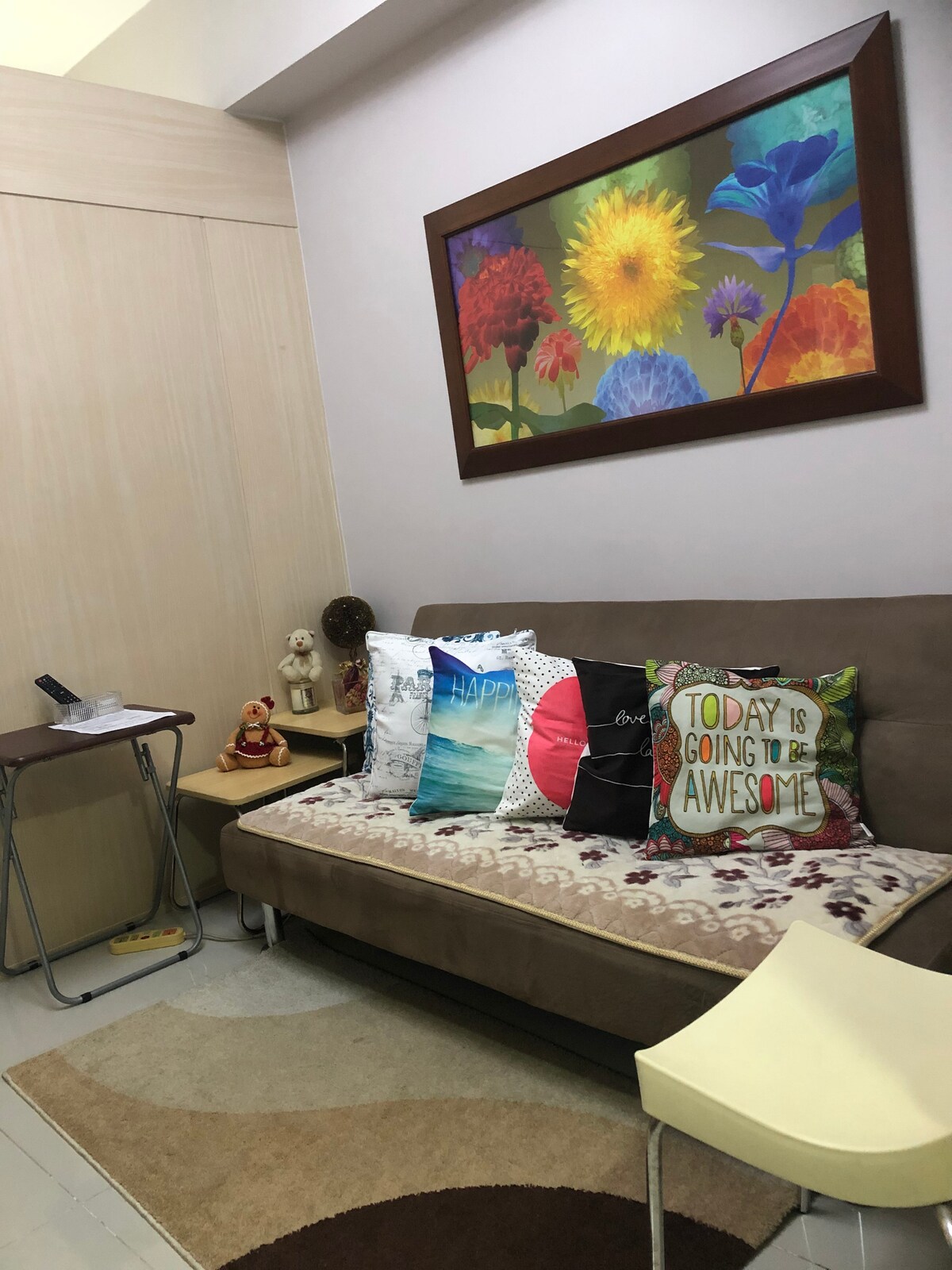 Estudio Superficie de la unidad: 37 Puedo organizar una plaza de aparcamiento si es necesario. - dentro de Bonifacio Global City - Principales establecimientos en las inmediaciones. - 2 camas individuales (se pueden combinar). - Para combinar camas, proporcionamos una espuma personalizada en el medio para conectar las 2 camas individuales. - Con sábanas y artículos de aseo. - Con TV inteligente de 43 pulgadas. - Con wifi y netflix. - Con utensilios de cocina y microondas. - Plancha/secador para tu ropa. - Calefacción.