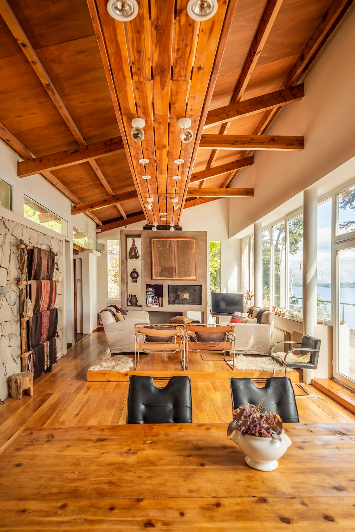 La casa está ubicada sobre la costa del Lago Nahuel Huapi. Es muy cómoda, tiene parque y costa propia. Tiene 5 cuartos con 5 baños en suite, además hay un sexto cuarto con su correspondiente baño, que fue concebido como cuarto de servicio pero se puede utilizar perfectamente. Estamos a 25 km del Cerro Catedral. Muchos esquiadores nos eligen todos los años para alojarse en nuestra casa y disfrutar de unas tardes inolvidables con una vista única. Cocina completamente equipada con lavavajillas.