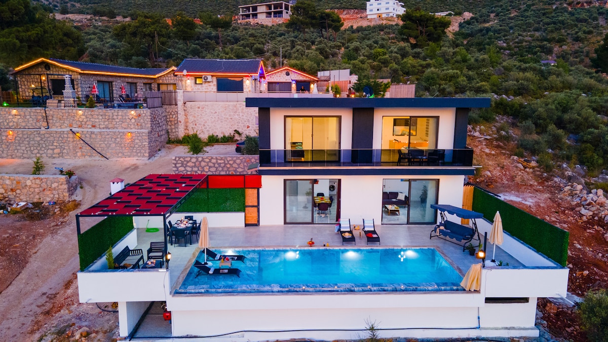 Villa New Ada se completó en 2022 y te abre las puertas a ti, tus estimados huéspedes. Con su lujoso diseño , exquisita comodidad y una increíble vista al mar, nuestra villa te promete unas vacaciones que no olvidarás. Nuestra villa , que consta de 3 dormitorios en total, tiene 4 jacuzzi , baño turco y sistema de calefacción por suelo radiante. Debido a la ubicación , se encuentra a muy poca distancia del centro de Kalkan y de las playas.