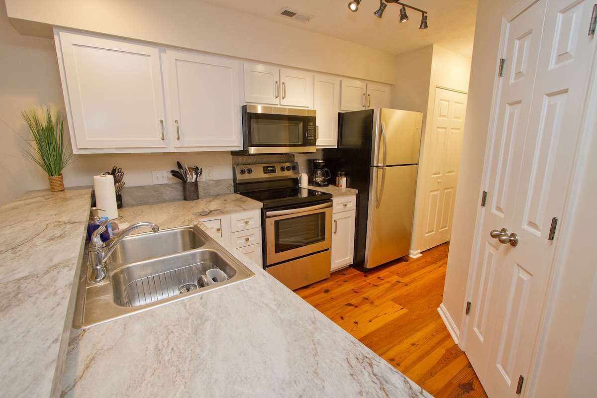 Nuestro apartamento céntrico está en el segundo piso de la Summerhouse en el Litchfield Resort en Pawleys Island (acceso por ascensor). Apartamento de un dormitorio, dos camas tamaño queen, sofá cama en la sala de estar, ducha a ras de suelo. Balcón amueblado junto a la sala de estar con vistas a la zona de la piscina. Muchas de las comodidades de la propiedad incluyen: piscinas, jacuzzi, senderos para caminar/montar en bicicleta, acceso privado a la playa, baños y duchas al aire libre. Starbucks y restaurantes en el lugar. Ven a alojarte en este inmaculado apartamento.