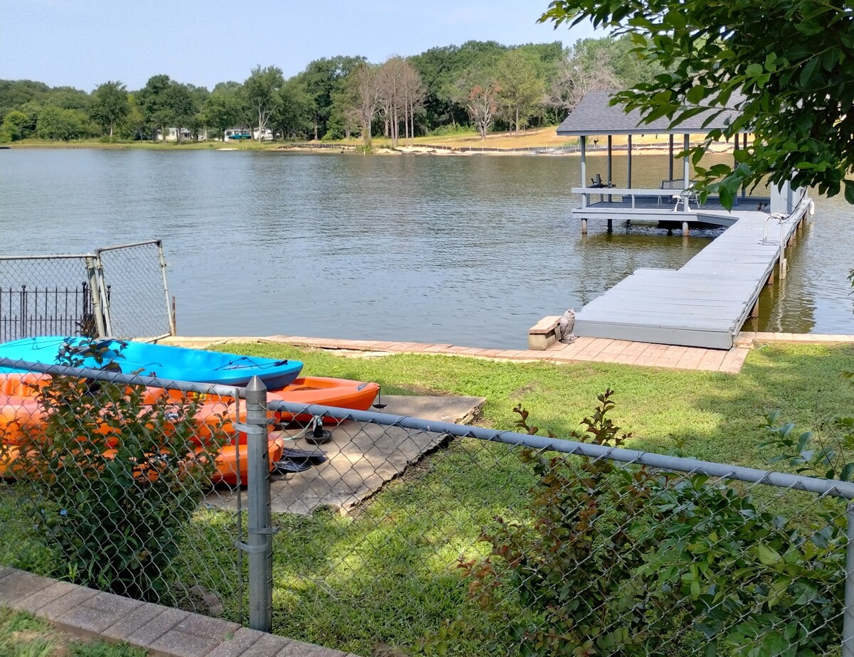 ¿Buscas una acogedora casa frente al agua en Cedar Creek Lake para la familia? Este 4/2 frente al mar con muelle de cubierta es el diseño perfecto para varias familias. Estamos a solo 1 hora del centro de Dallas. Buffalo Inn está rodeado de árboles maduros, en una cala abierta protegida justo al lado del cuerpo principal del lago. (El mejor tubing, esquí acuático en el lago) Tendrás acceso a juegos, 2 kayaks con límites de peso de 130 libras, hamaca, flotadores, juguetes acuáticos, equipo de pesca, parrilla de gas, fogata de leña, agujero de maíz y más.