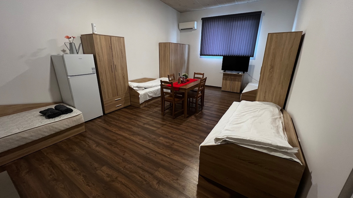 Este elegante apartamento de un dormitorio cuenta con una acogedora cama doble y un cómodo sofá cama, lo que lo hace ideal para una familia o dos huéspedes. Viene con una cocina totalmente equipada, perfecta para preparar comidas y una encantadora terraza donde puedes relajarte. Situado en una calle tranquila, el departamento está a solo 5 minutos a pie del centro de la ciudad, ofreciendo tranquilidad y comodidad.