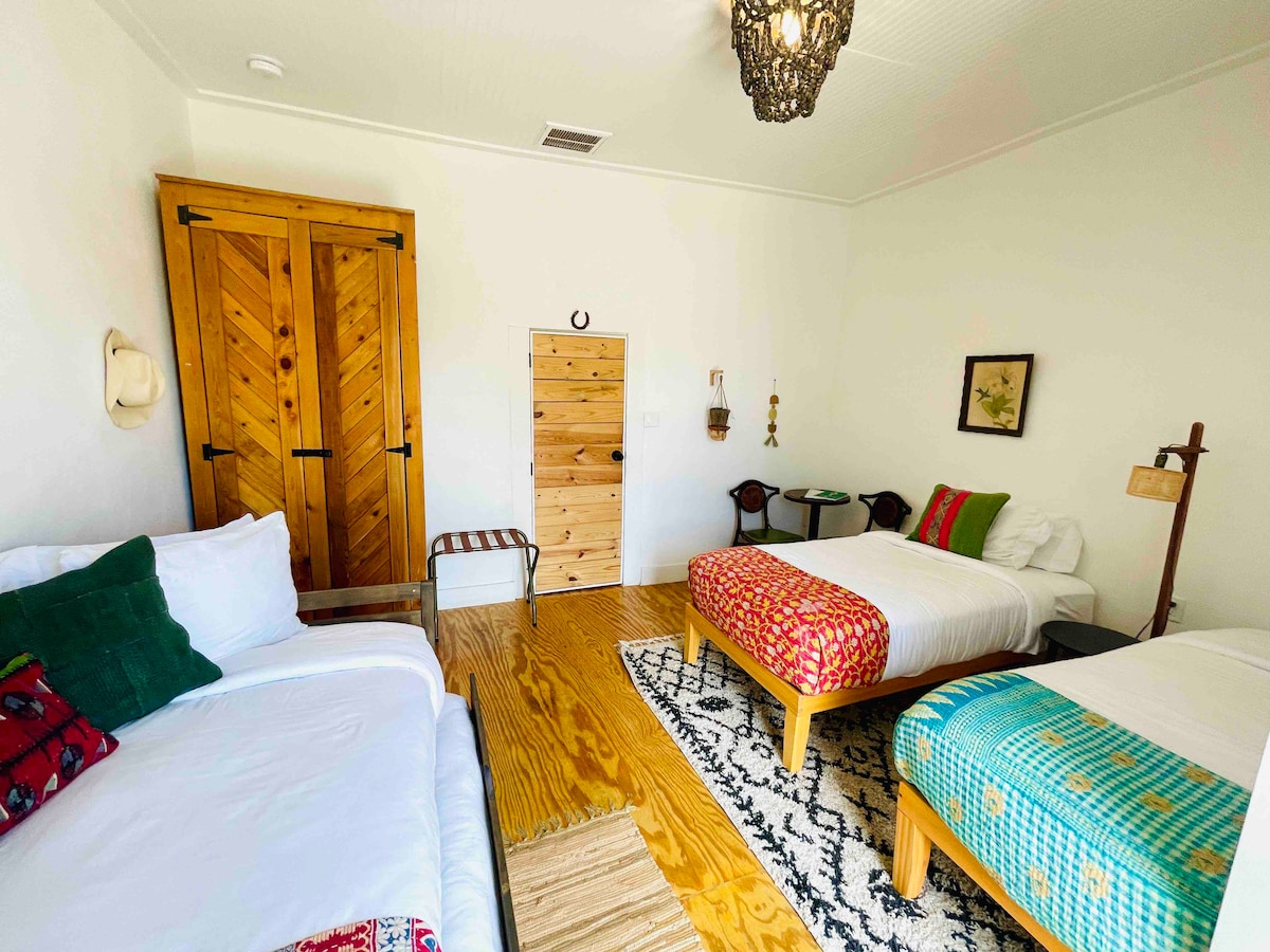 Casa de Luxx: el ala de dos dormitorios es una sección privada de la casa con entrada propia ubicada entre la Plaza y Meow Wolf. Jacuzzi, sauna y piscina abierta todo el año. Incluye dos cómodas habitaciones, baño, oficina, cocina pequeña, chimenea y patio. Tranquilo con hermosas vistas. Esta ala NO incluye cocina completa, sala de estar, fregadero de cocina o sofá. Para estos, reserva Casa de Luxx o Casita de Luxx. Cargador Tesla/EV.