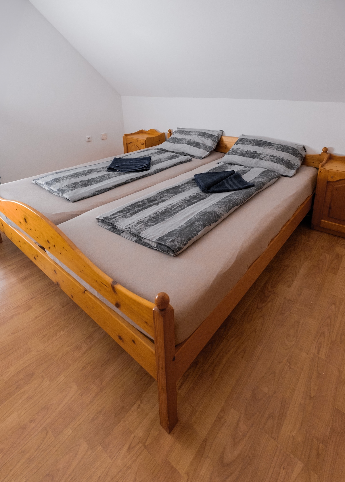 CASA DE HUÉSPEDES HORHAUS Nuestra casa de huéspedes se encuentra en el centro del barrio del casco antiguo de Kozármisleny, que es una pequeña ciudad a unos 5 kilómetros de Pécs, al pie de las colinas de Mecsek. La casa es ideal para una familia (4-5 personas) y está amueblada en estilo Landhaus. Los muebles están tratados con cera de abejas y naranja natural. Estos y los tejidos de lino natural, los muebles antiguos ayudan a sentir el ambiente contemporáneo. La calefacción por suelo radiante, la cocina bien equipada, la televisión por satélite y el baño proporcionan el máximo confort. La ropa de cama y las toallas también forman parte del equipamiento. Para familias con niños pequeños también ofrecemos una cuna y una silla alta. Te prestamos algunas bicicletas para que puedas organizar excursiones en bicicleta por las colinas cercanas. En el jardín podrás relajarte a la sombra de un peral de la edad de Matusalén. También se pueden ver los antiguos edificios de la granja, como una cocina de verano y equipos como utensilios de lino y sartenes. Los huéspedes pueden participar en las obras alrededor de nuestro jardín de pasatiempos. También te presentamos los platos y tradiciones populares regionales especiales como la danza folclórica, el rociado y los festivales vintage. Para nosotros es importante pensar en el medio ambiente. En nuestra casa de huéspedes, los residuos se recogen de forma selectiva y también utilizamos productos de limpieza respetuosos con el medio ambiente. También recibimos un premio por nuestra casa de huéspedes respetuosa con el medio ambiente. Hay una cama de matrimonio, un sofá cama y un futón.