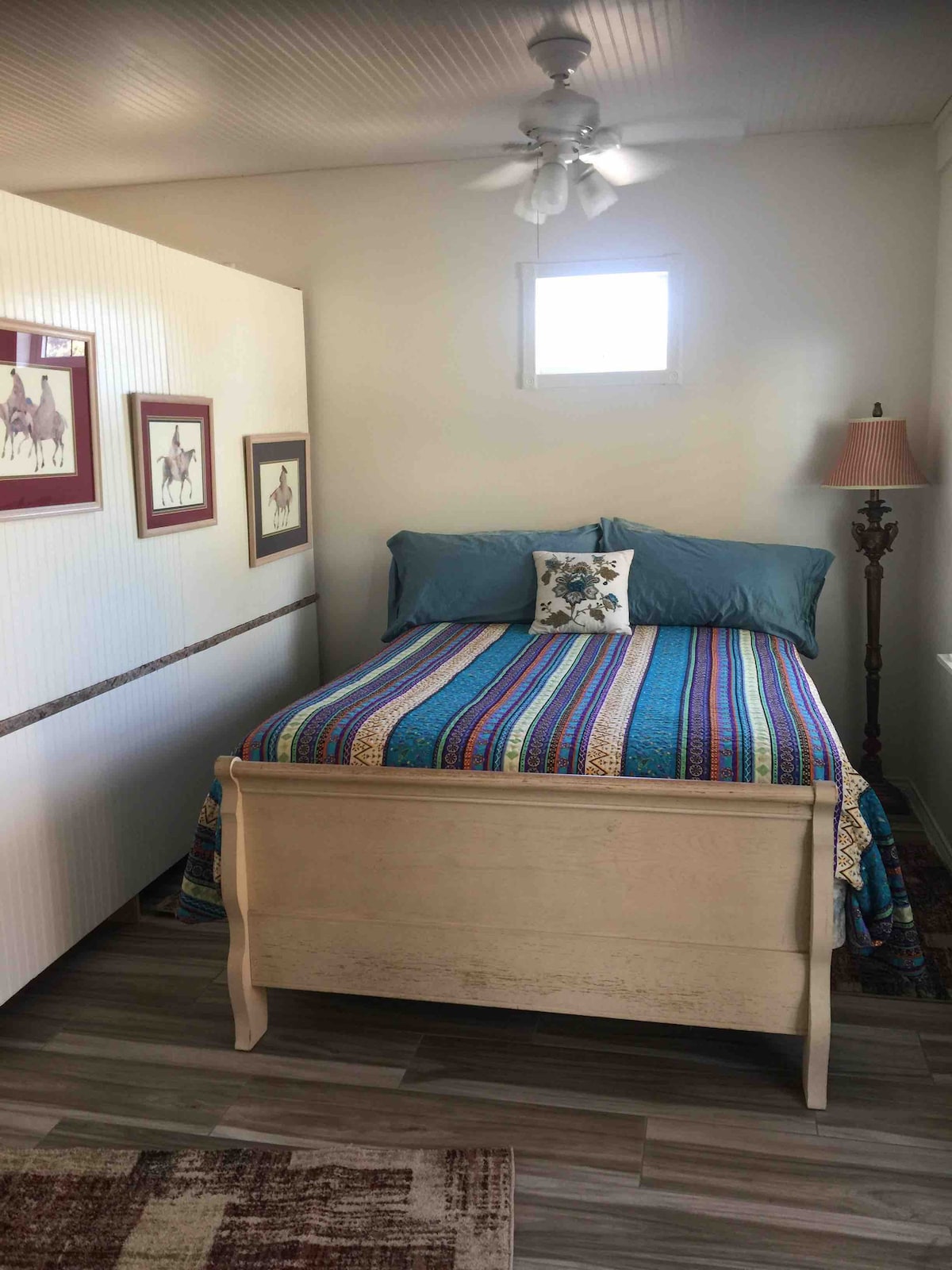 A siete minutos de Main St, FBG. Camino sin pavimentar/privado/ESPACIO VERDE/CABALLOS/VACAS GRAN RM COMPARTE UNA PARED CON NUESTRA VIVIENDA. ¡Como es una PARED COMPARTIDA, es un BARGIN! No se admiten mascotas. Entrada PRIVADA y baño PRIVADO. Amueblado con muebles de cuero extragrande y 2 camas TEMPERPIEDIC. Estilo rústico, antigüedades. Diseño para DOS parejas/familia SM, a aproximadamente 800 pies cuadrados. Es enorme. No hay cocina. NO cocinar. Rincón de café, nevera, microondas, Culligan H2O 2 áreas al aire libre, una cubierta con sombra de árbol grande y hamaca. 2.ª chimenea de patio