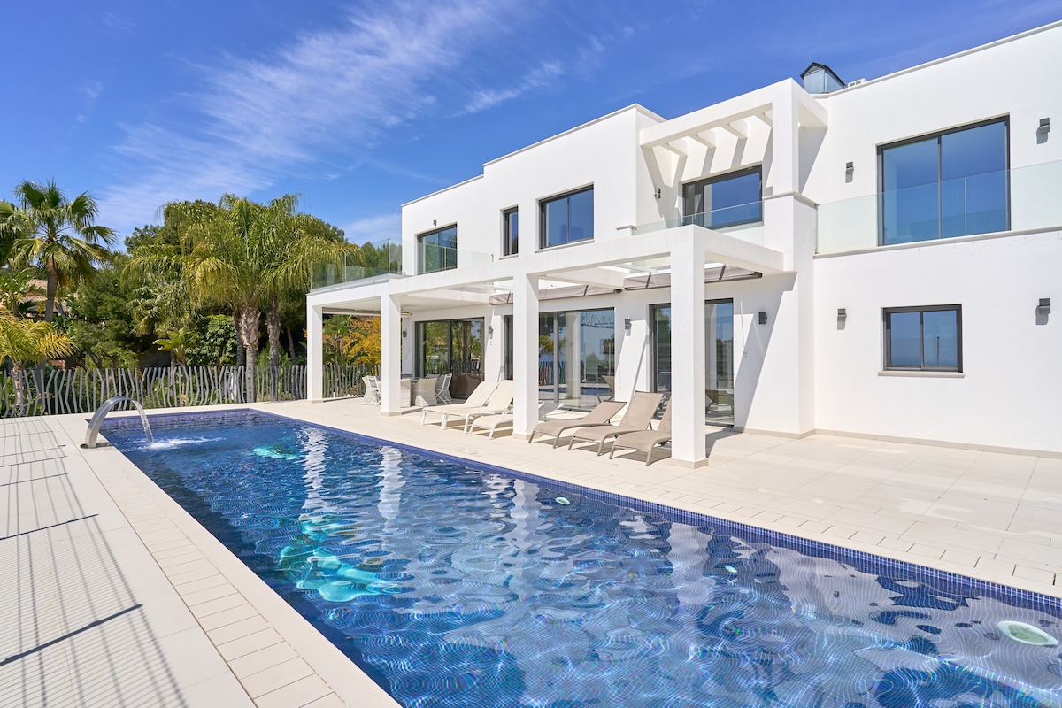 Villa de lujo: piscina climatizada y vistas al mar, cerca de la playa