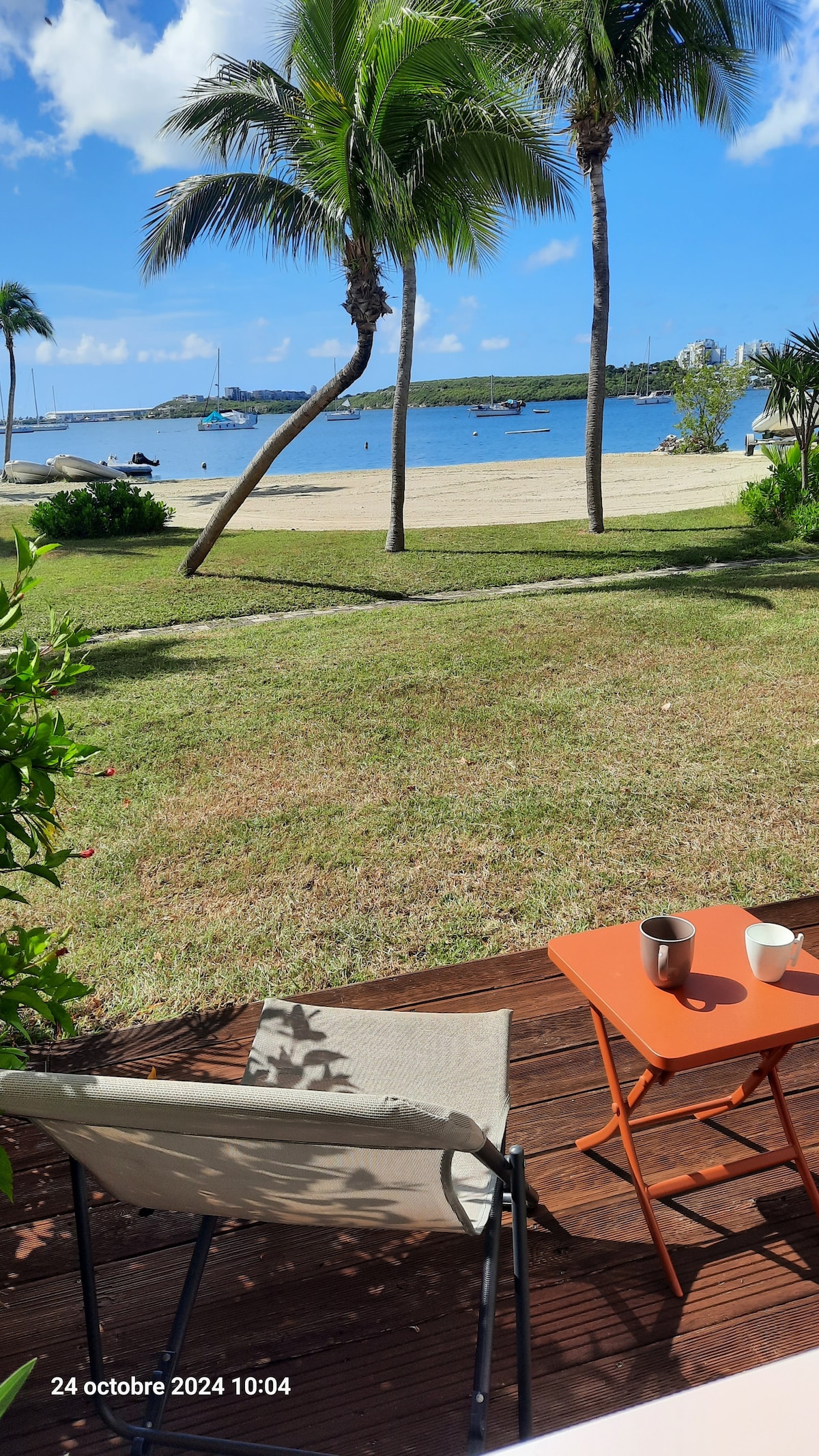 Magnifique appartement en rez de jardin, il offre une vue imprenable sur le lagon. En première ligne, vous êtes logé au bord de l'eau. La résidence le flamboyant calme et sécurisée, située à la baie nettlé, offre un accès facile à tous les sites, idéal pour découvrir l'ile (aéroport à 8km). L'appartement dispose d'une chambre séparée, confortable et bien équipé pour les familles, il accueille jusqu'à 4 personnes Profitez de 2 piscines jusqu'au sunset ou baladez vous le long de la baie.