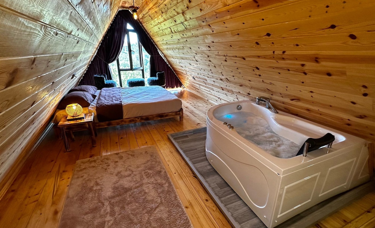 Unas vacaciones tranquilas y cómodas te esperan en nuestro bungaló de piedra especialmente diseñado con jacuzzi, rodeado de naturaleza en Trabzon Araklı. Tiene 1 habitación, 1 salón, 1 baño/WC, 1 cama doble, 1 cama individual y 1 sofá cama en una superficie de 80 m². Disfruta de la relajación con balcón, cocina americana, patio y jacuzzi privado. Momentos inolvidables te esperan en esta estructura de piedra equipada con detalles modernos en el corazón de la naturaleza.
